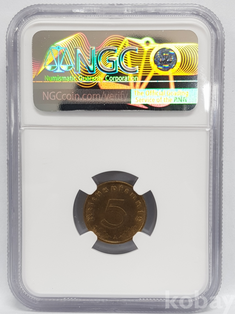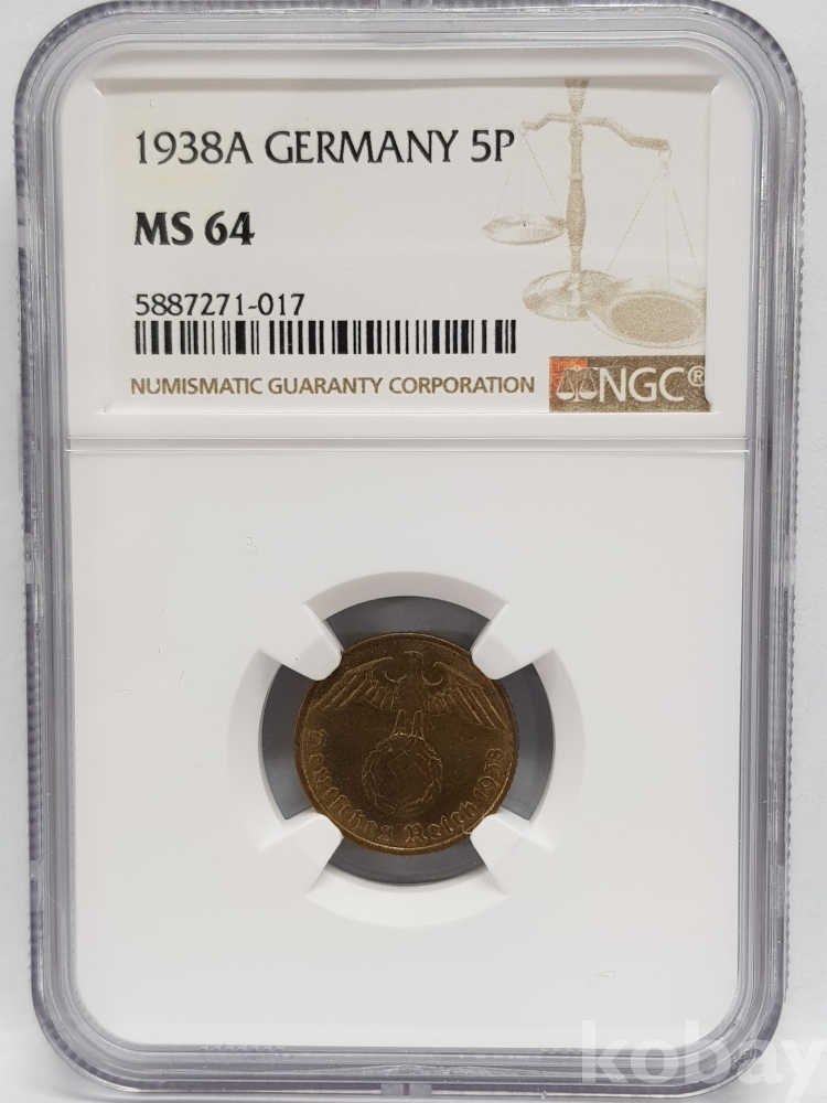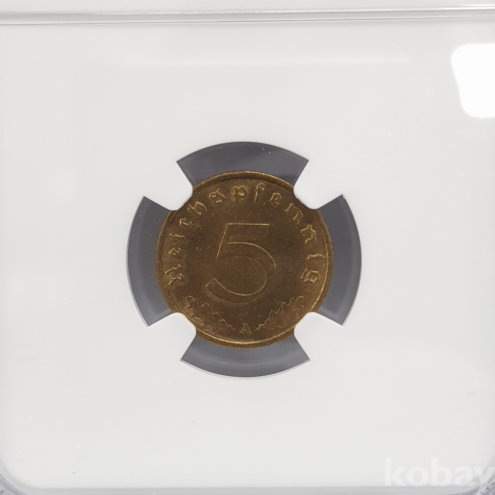 - 1938년 독일 5라이히스페니히 주화 NGC MS 64 그레이딩 주화