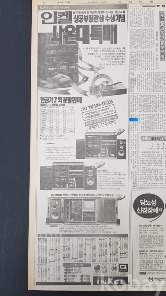 **** 1987.11.27(동아일보)/인켈 사은대특매 광고 등/16면