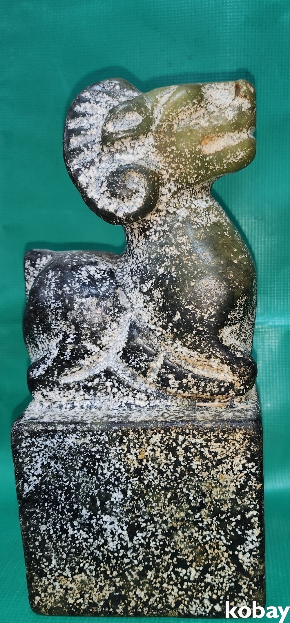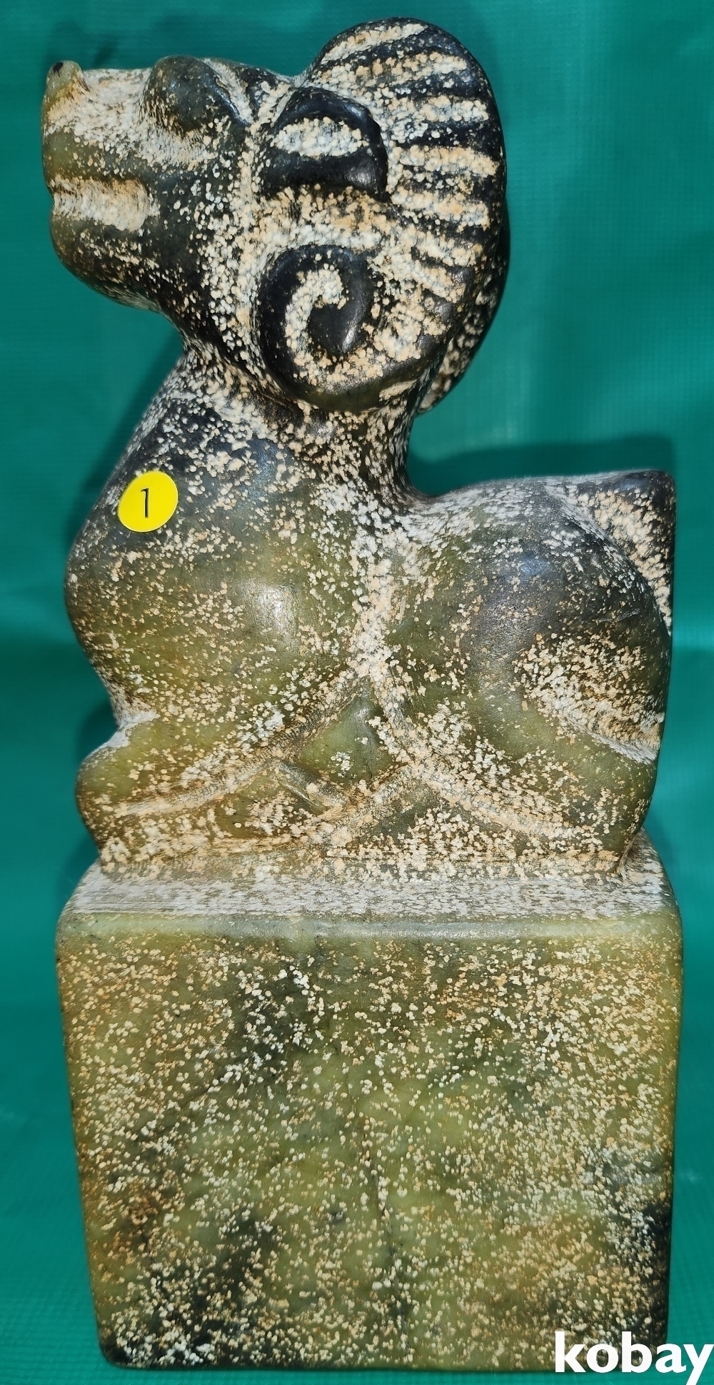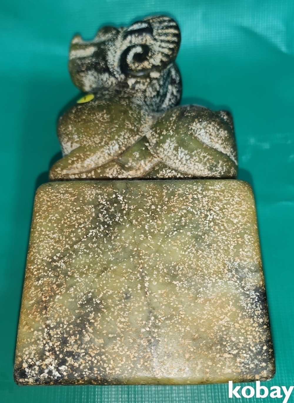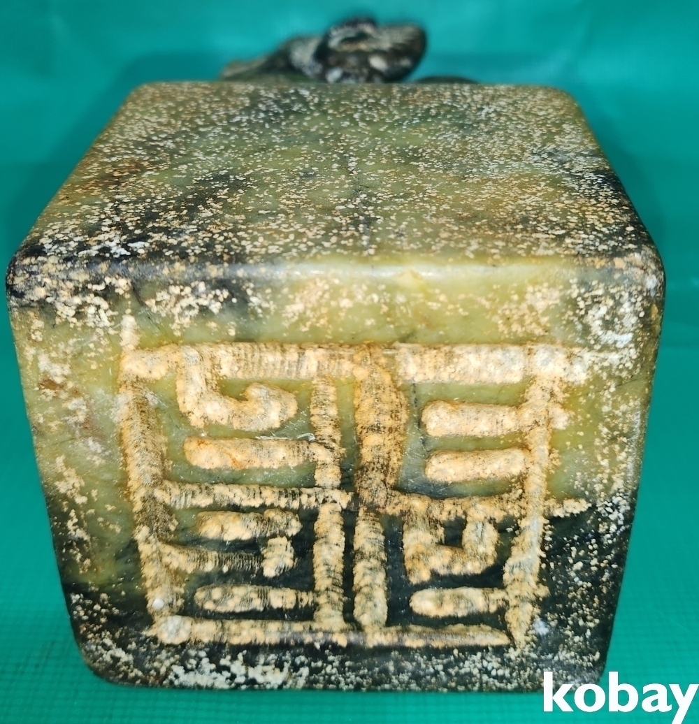 청옥으로 만든 사각 큰도장 동물상입니다,
