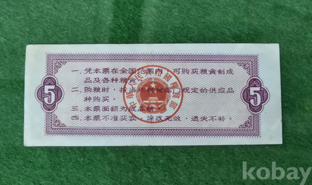 全國通用糧票 伍市斤(전국통용양표 5시근)-1966年