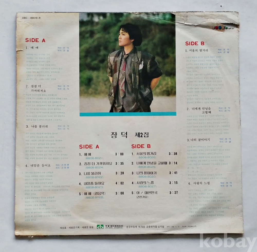 EX : 약간의 마모, 모서리 찢김 존재 음반상태