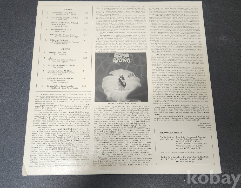 1977년 하와이 Kkua Records 발매 초반 프레싱 LP 입니다.