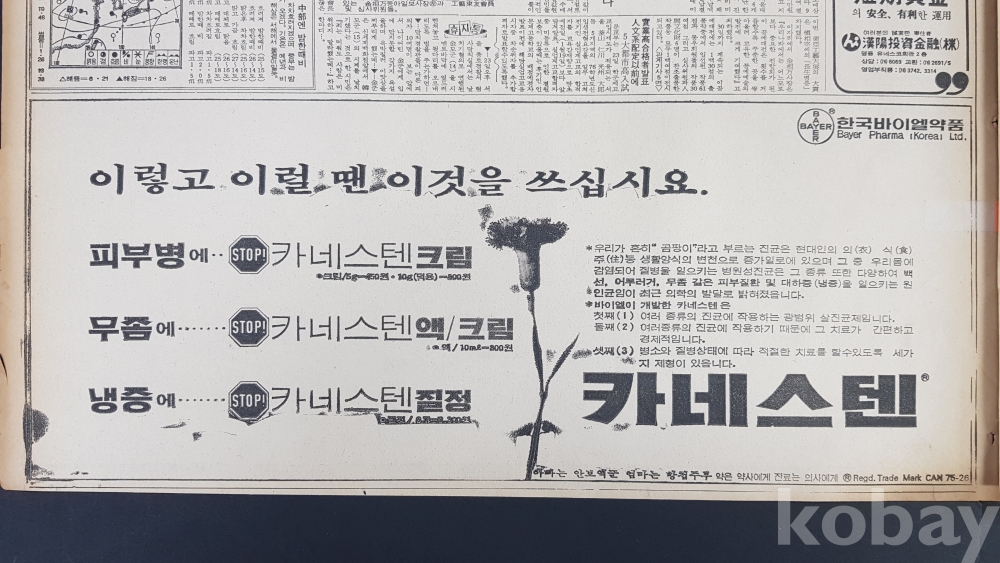 **** 1975.09.24(동아일보)/한국바이엘약품 카네스텐 광고포함/약 8면