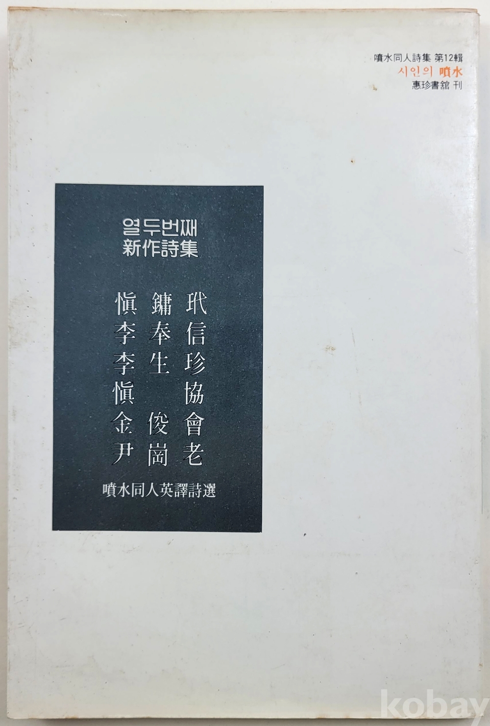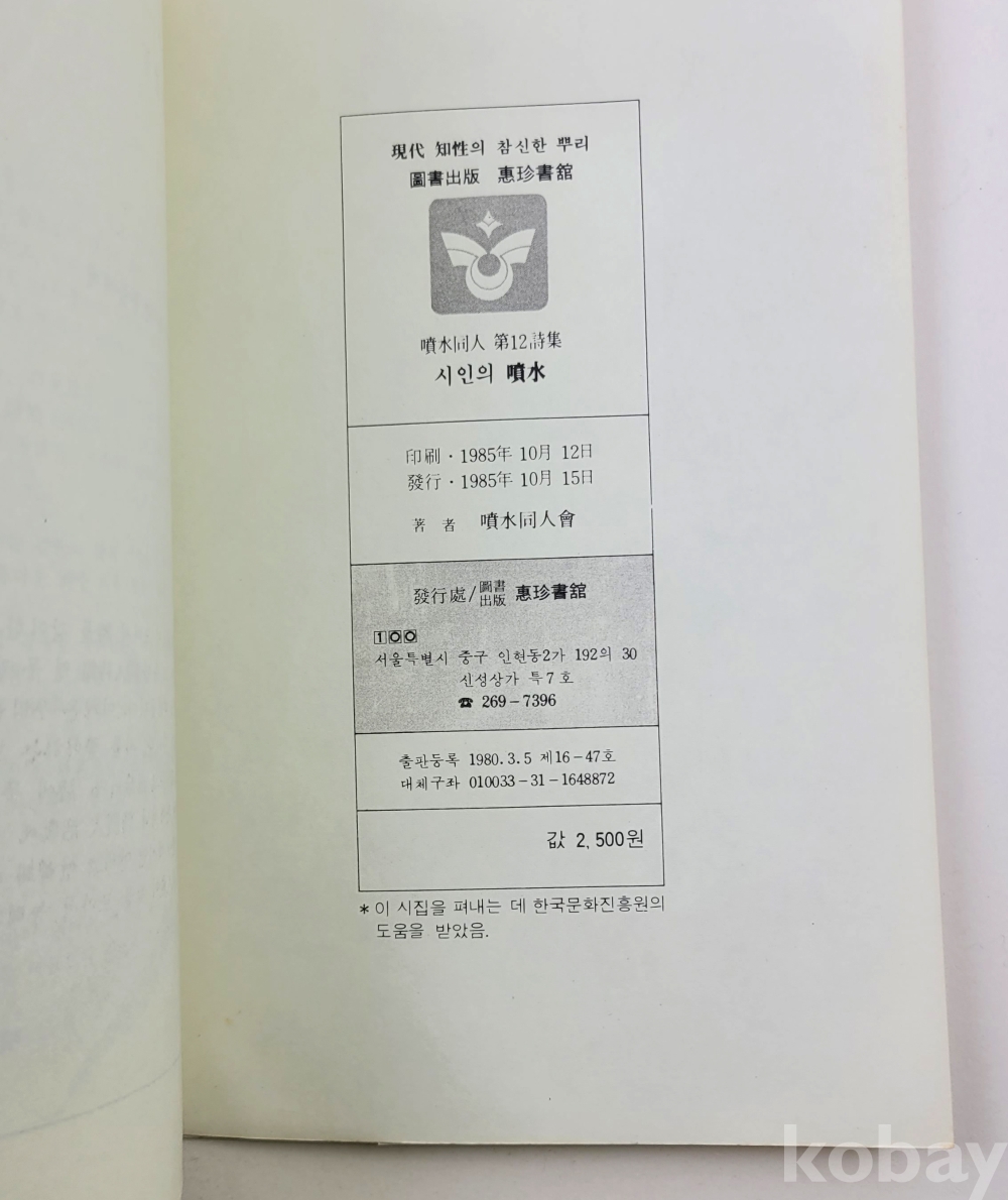 물 품 명 | 시인의 분수 / 윤강로 외 5인 / 분수동인 제12시집 / 1985년 초판 / 혜진서관 |