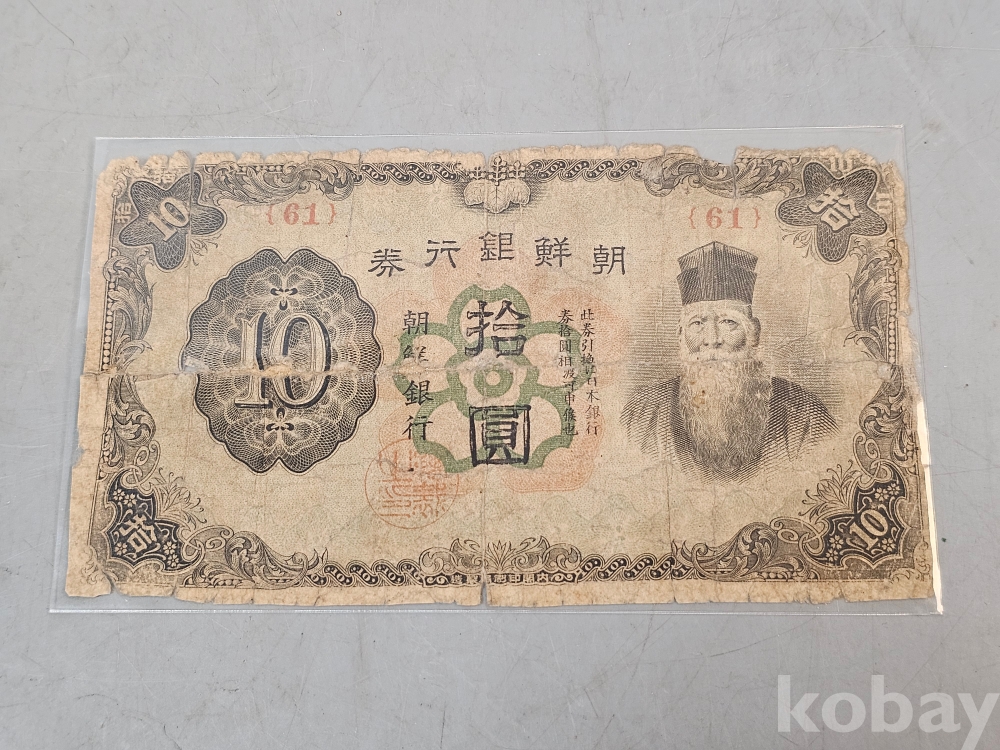 1944년 발행 수노인상 갑십원(무번호권) 샤용제입니다.