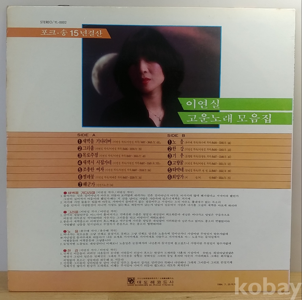 이연실 고운노래 모음집 (새벽을 기다리며 / 노을) 1984년 대도레코드 초반
