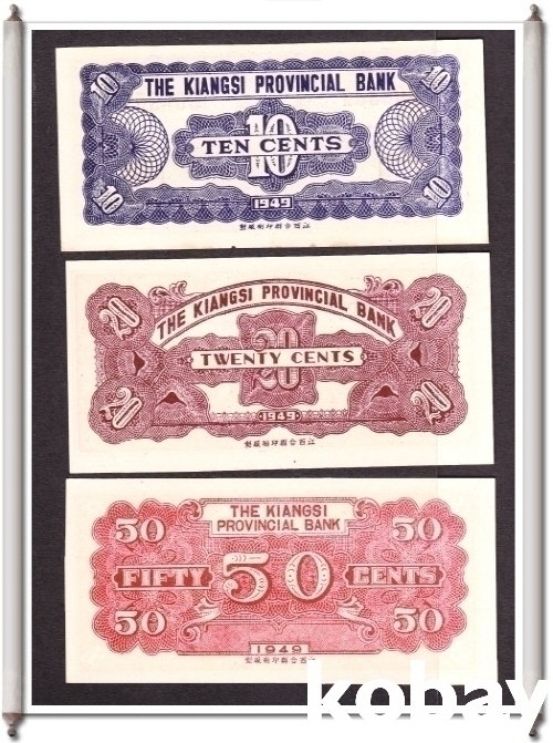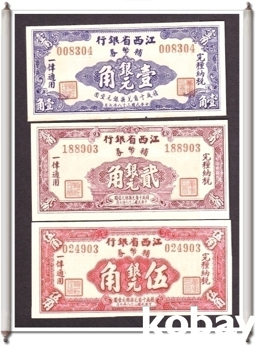 - 강서성은행 1각.2각.5각 은원권 중화민국38년(1949년) 3종셋트미사용 지폐입니다, - 배송료 선결재 부탁드립니다.