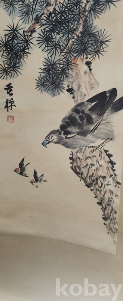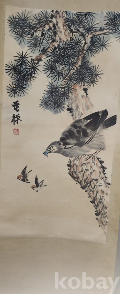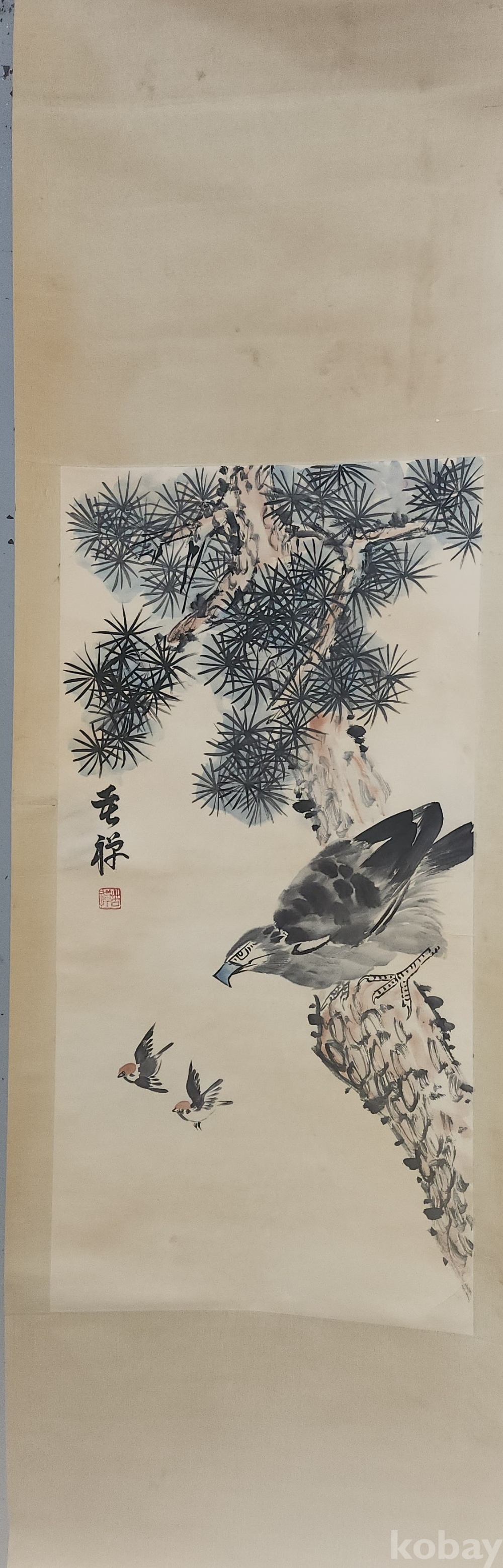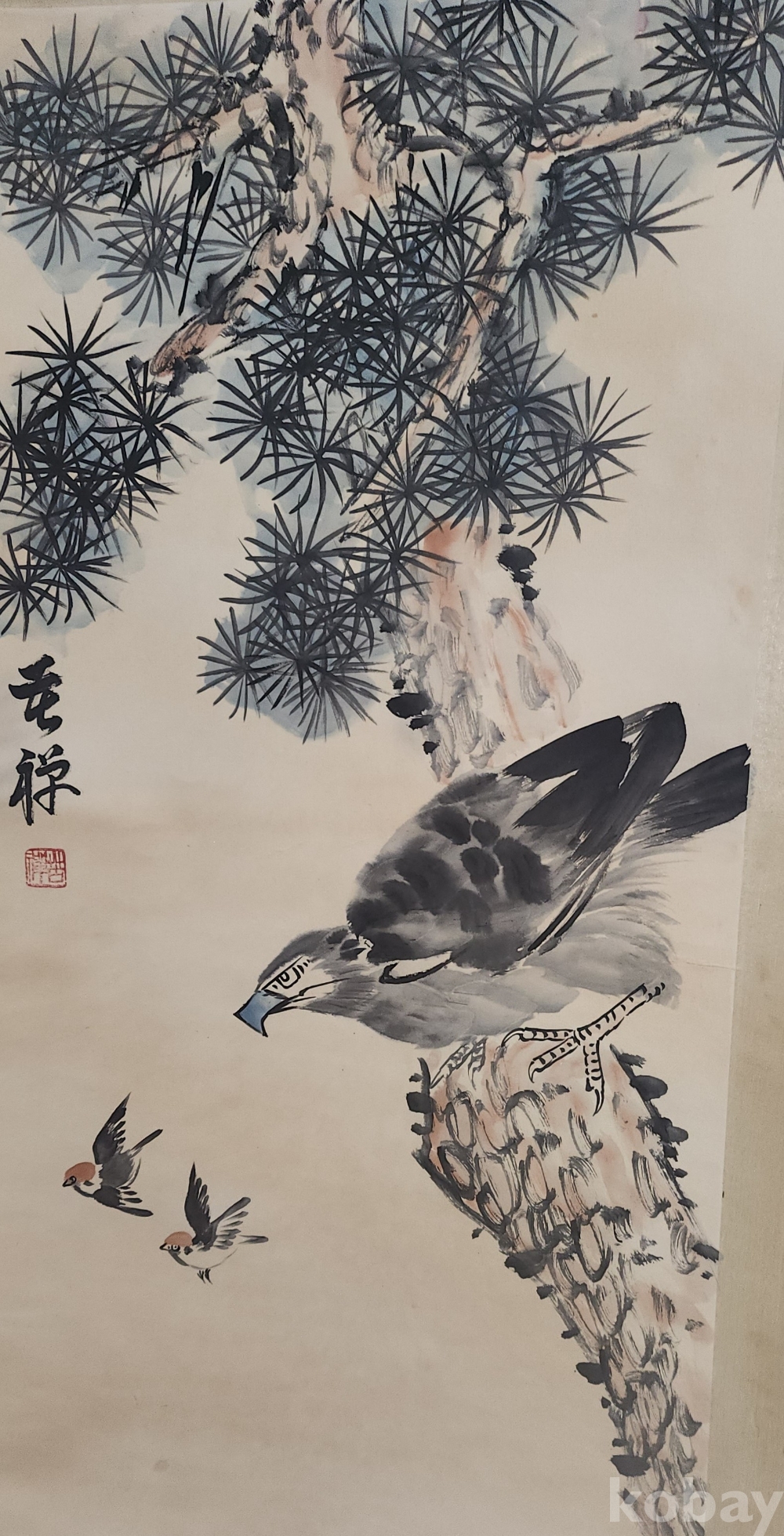 중국화가 고선 수결이 보이는 소나무와 그림 큰 족자입니다,