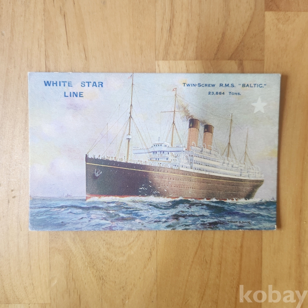 1912년 침몰한 타이타닉호의 선사였던 화이트 스타 라인의 타이타닉호 이전 플래그쉽 발틱호가 그려진 사진엽서입니다.