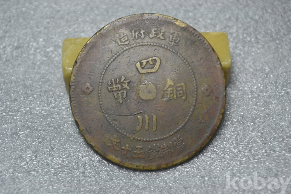" 매우 귀한종류 ".. " 중화민국원년 귀중한 고액권 50문 군정부조 사천동폐(四川銅幣) 당제전오십문(當製錢五十文)(미세한 눌림흔적~) ~ 대형 중국동폐 ".. " 중화민국원년 50문 사천동폐 36 mm 대형크기 ".. 진품 중국동폐