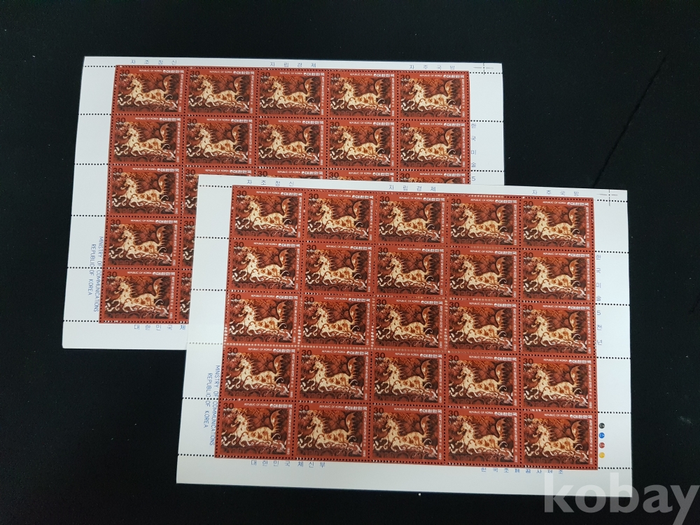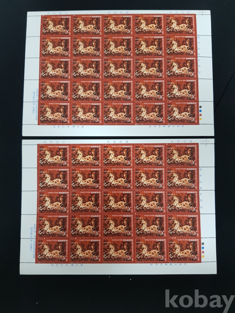 - 미사용 1979년 한국미술 5000년 제 6차 천마도 전지 2매 일괄
