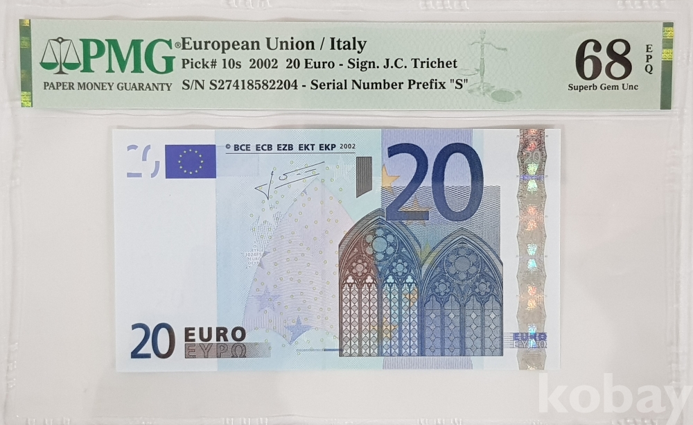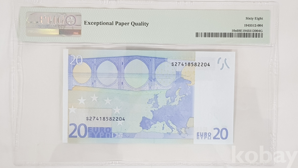 - 유럽연합 이탈리아 2002년 20유로 PMG 68 EPQ 인증 지폐