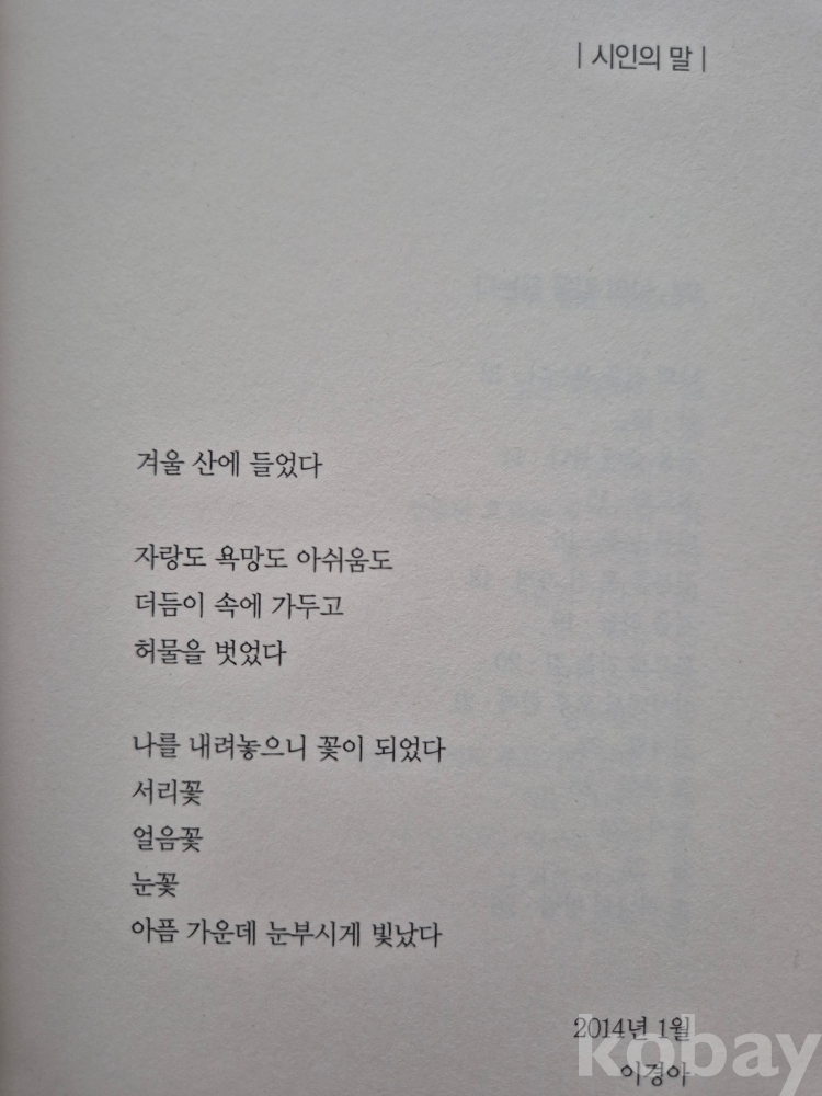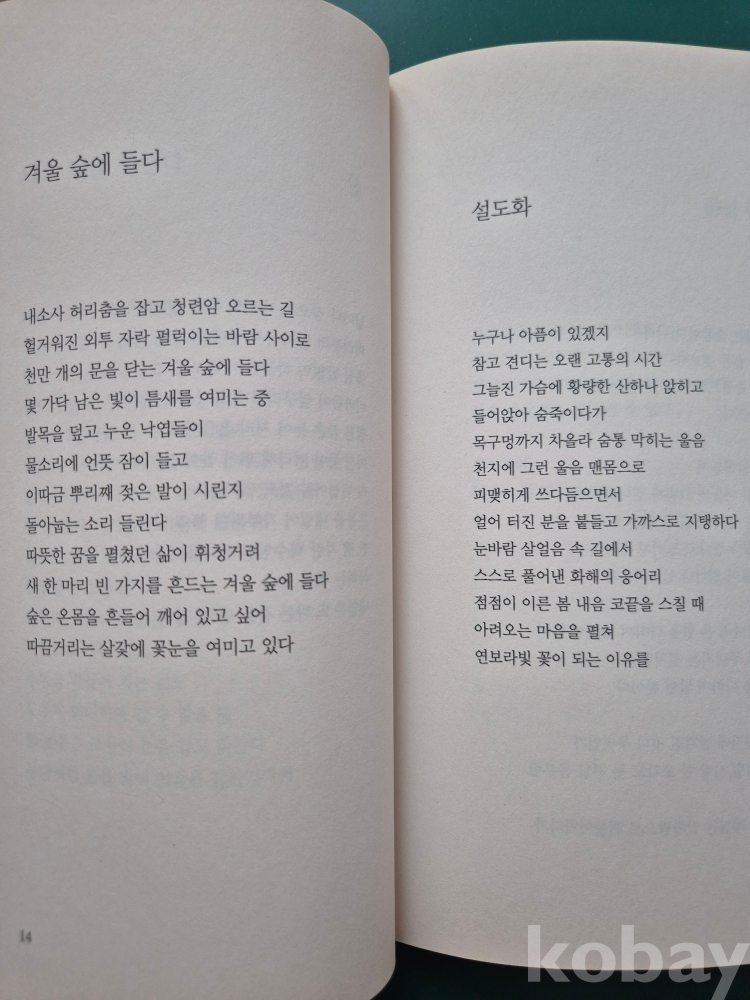 겨울 숲을 바라보는 성숙하고 담담한 시선이 담긴 시학.