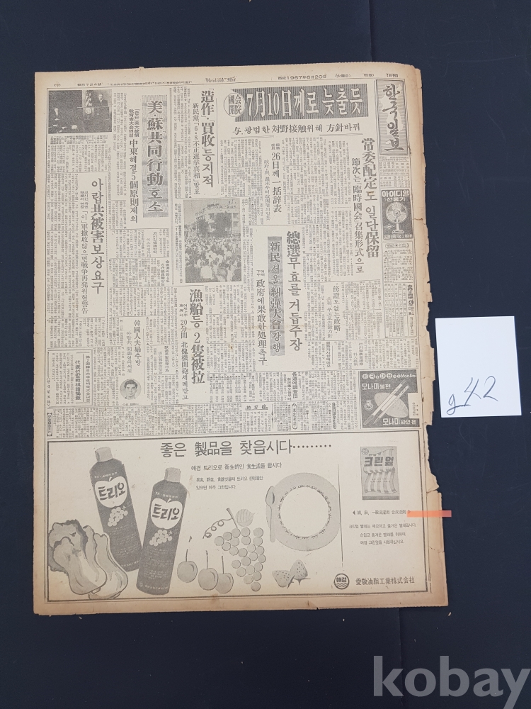 **** 1967.06.20(한국일보)/애경유지공업주식회사 트리오 등 광고포함/약 4면