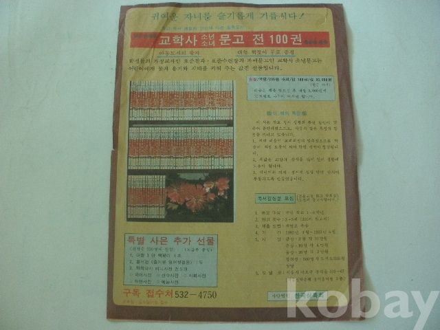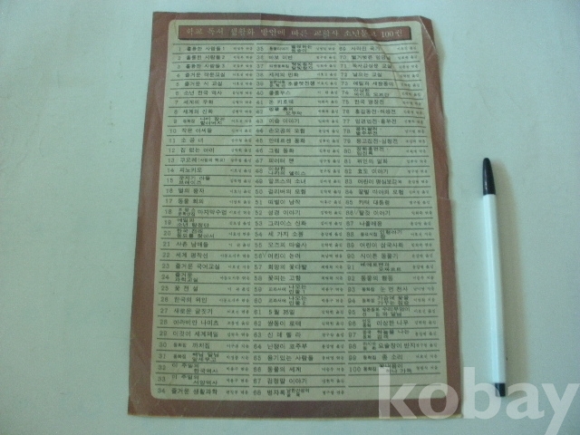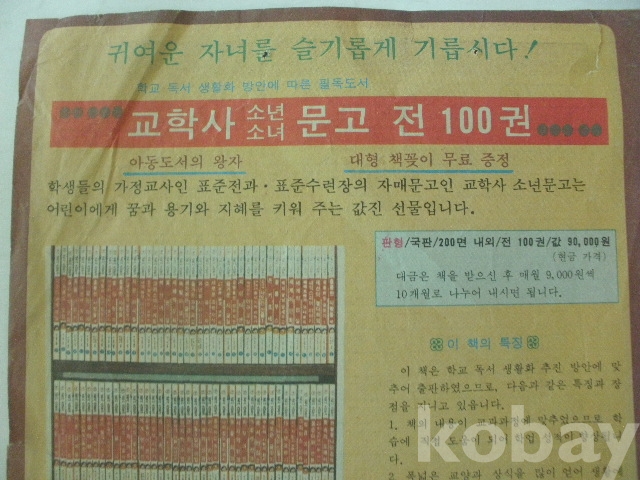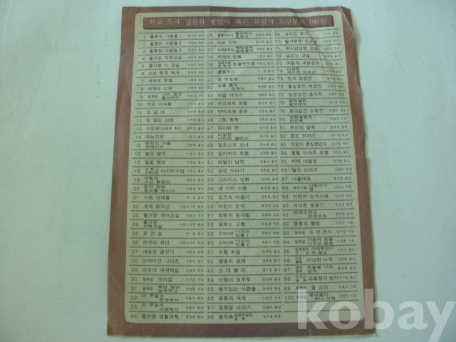 교학사 소년 소녀 문고 - 전100권 - 홍보전단지 (뒷면, 100권 목록, 한국상록회)