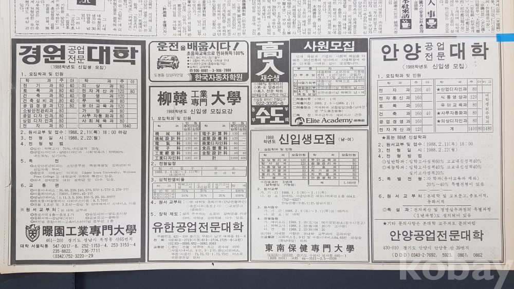 **** 1988.02.09(중앙일보)/전문대학 신입생모집 등 광고포함/약 16면