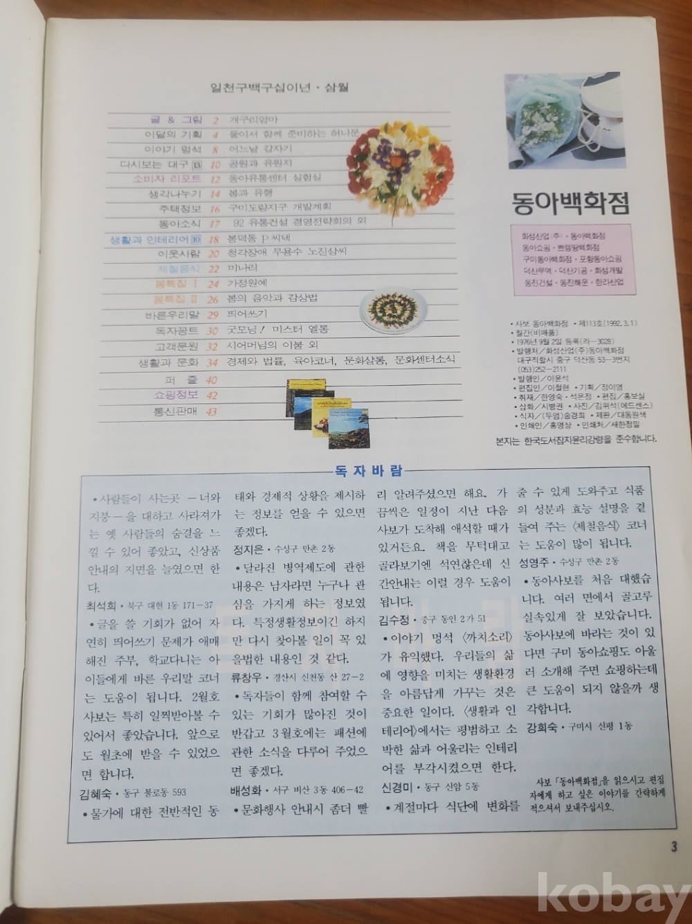 1. 동아백화점 통권 113호, 화성산업, 1992년, 43쪽, 월간, 상태 상, 사진 참조