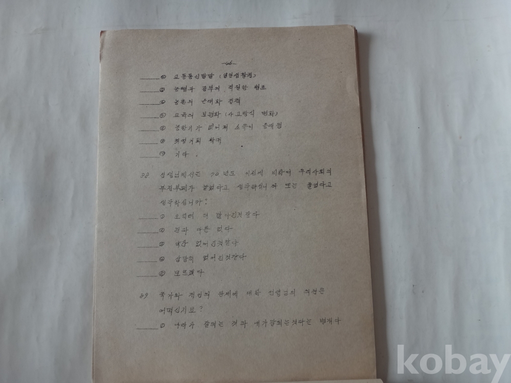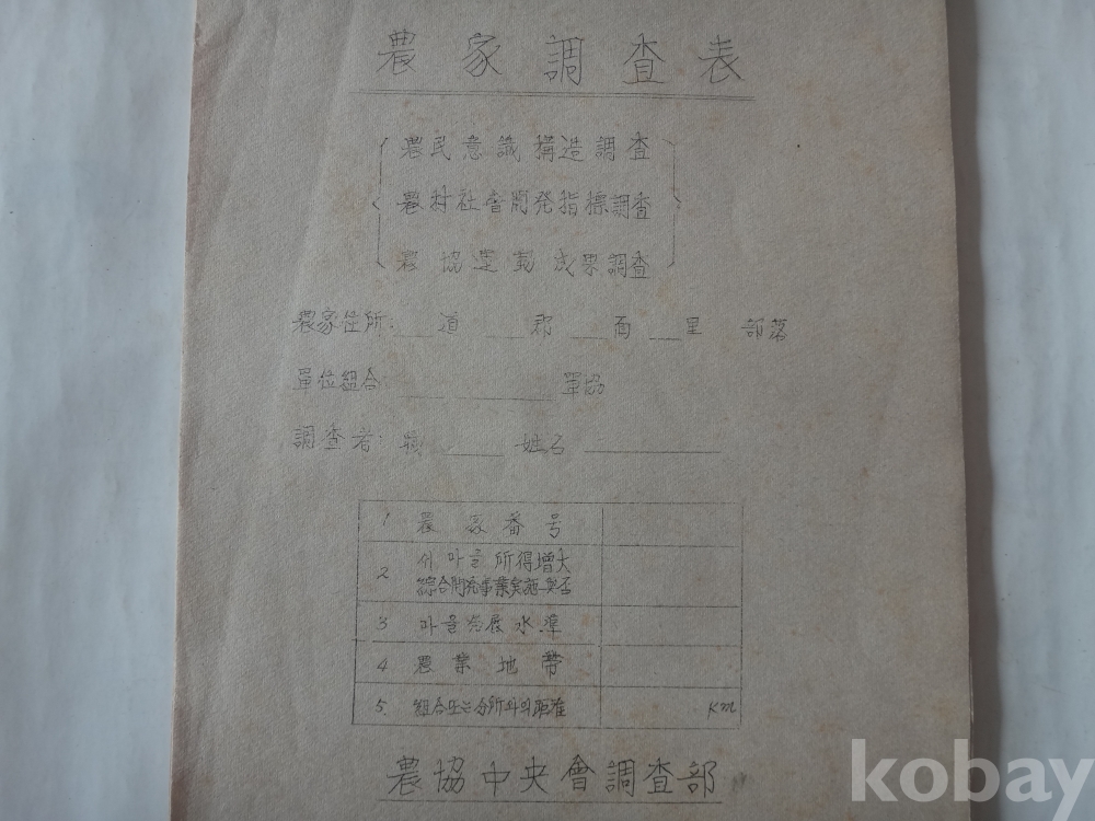농가 조사표 - 농민의식구조, 농촌사회개발지표, 농협운동성과 조사 (농협중앙회 조사부)