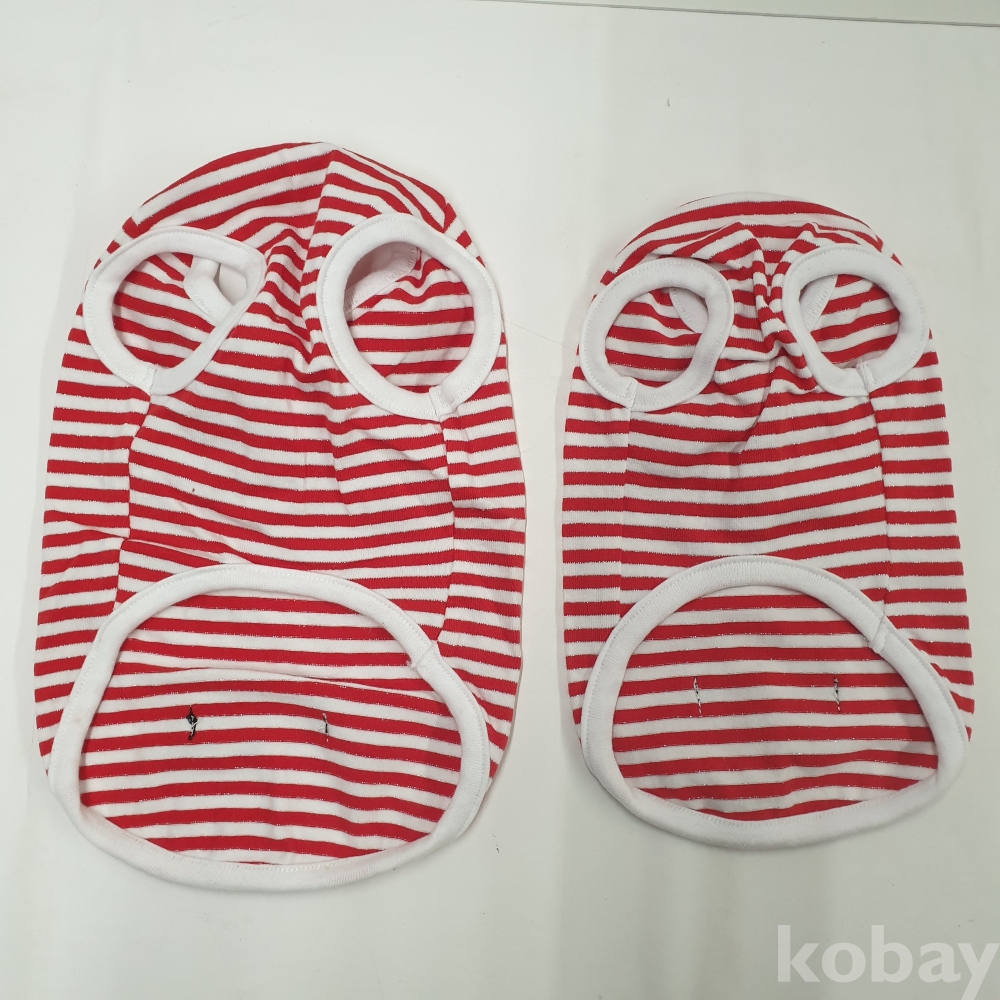 『천원경매』12-0156 강아지 옷 2개 (빨강색 스트라이프, S 사이즈 1개, M사이즈 1개)
