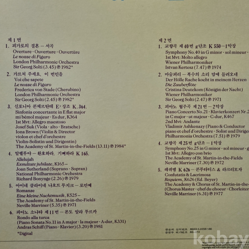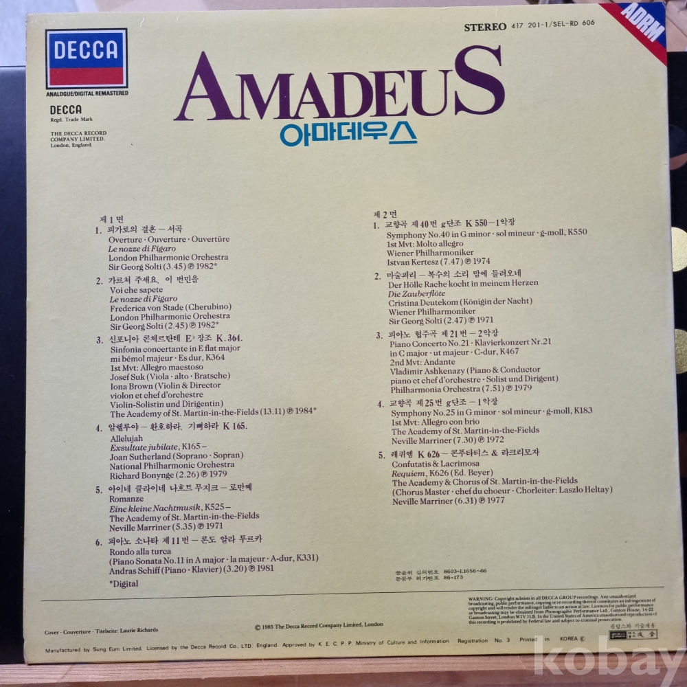 아마데우스 [피가로의결혼, 교향곡 제 40번 G단조] DECCA 성음 1986년