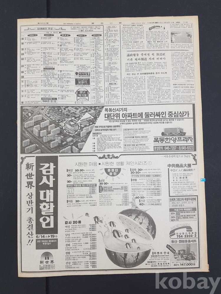 **** 1988.06.15(동아일보)/신세계 감사대할인 광고포함/약 16면
