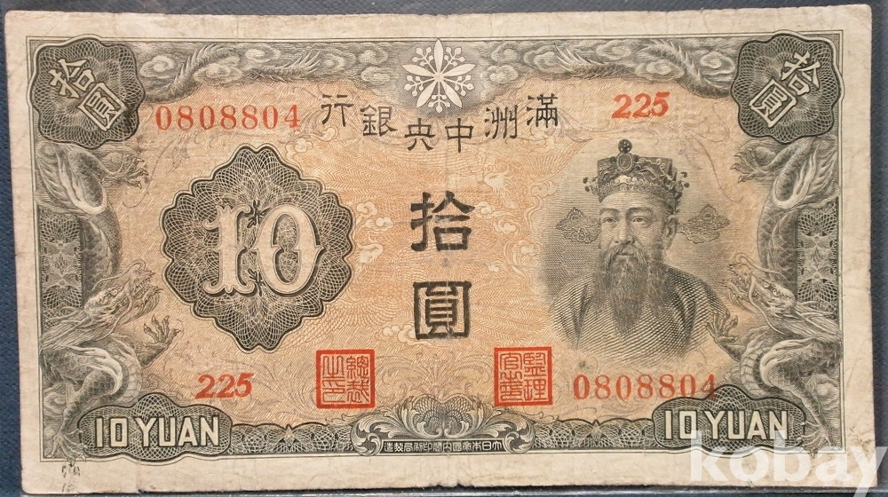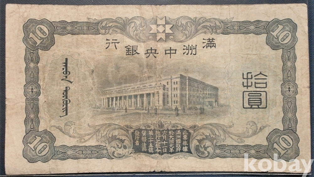 중국 만주중앙은행 10원 대동원년