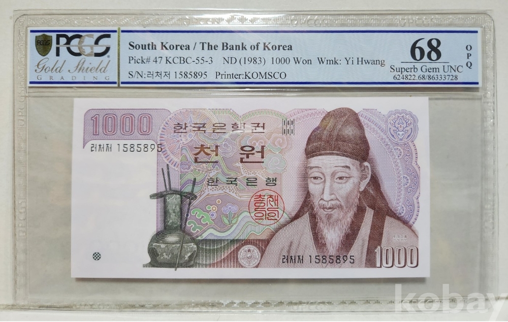 -대한민국 2차 천원 음성권 PCGS 68 고등급이며 그레이딩 입니다.