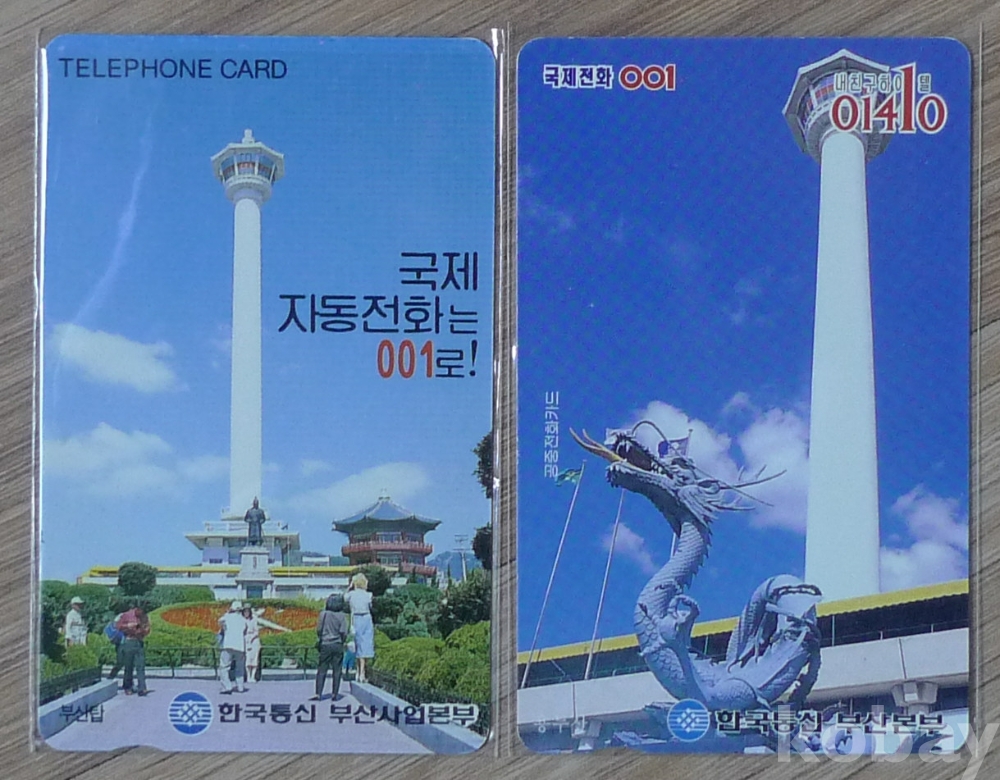 1990년대 부산 용두산 공원 광고 전화카드 2장