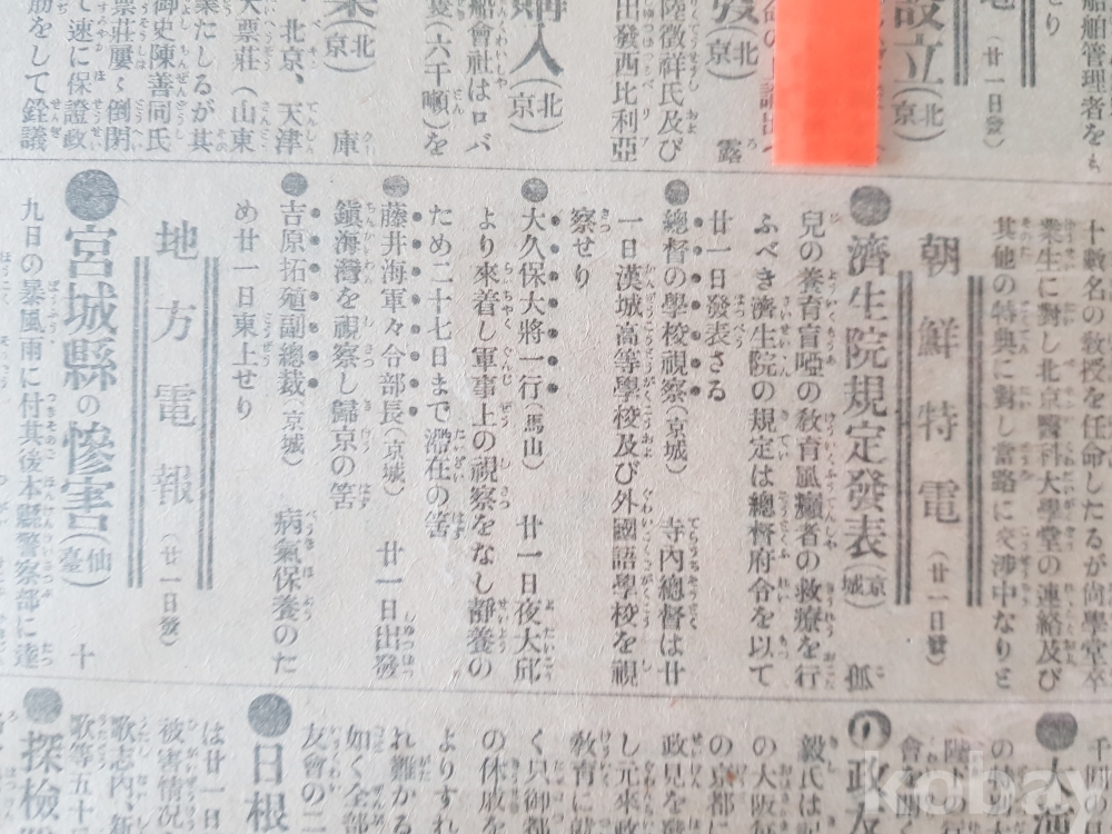 [EE67]*東京日日新聞/1911.6.22./朝鮮特電.제생원규정 발표,총독의 학교시찰,
