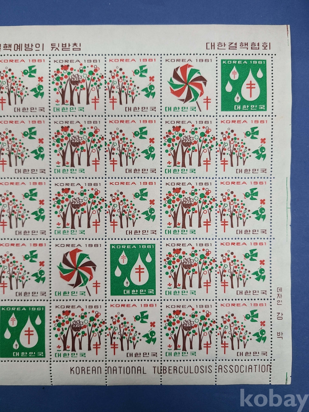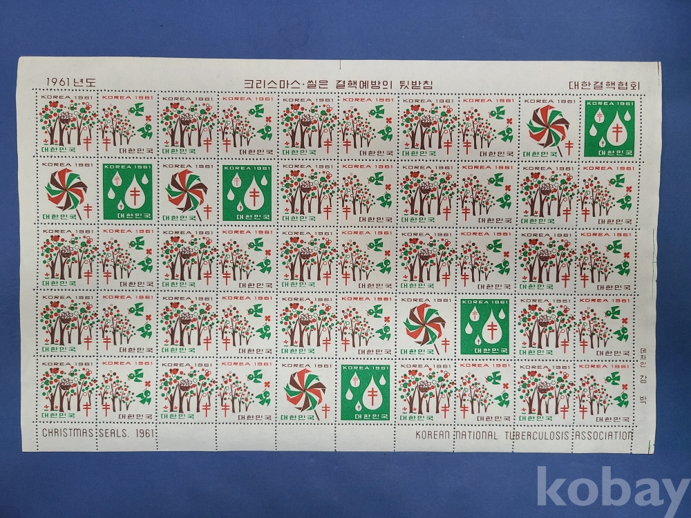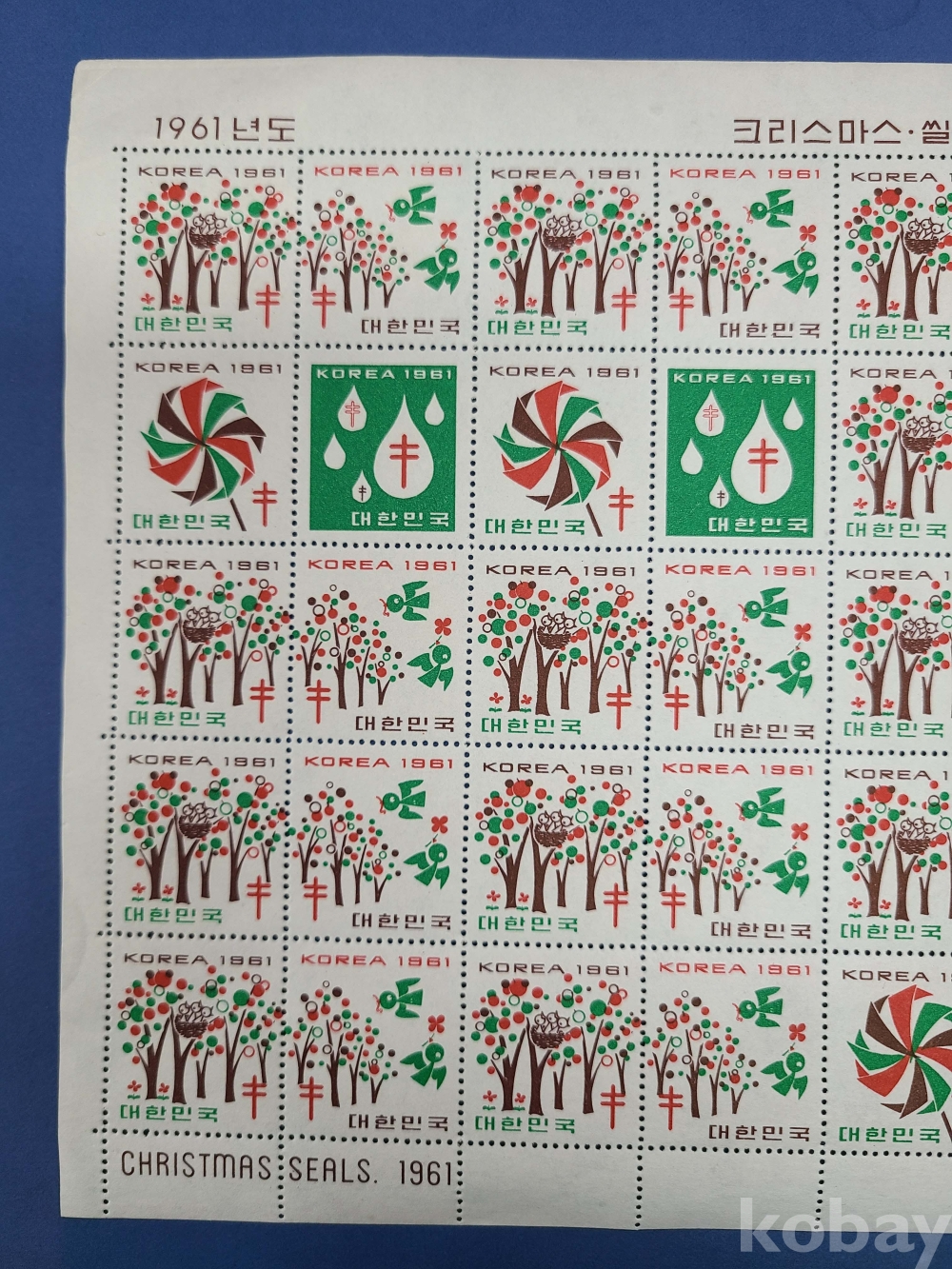 TCS 23-26*1961년 크리스마스 씰 [팔랑개비와 숲속의 새] 50매 전지(10x5).VF