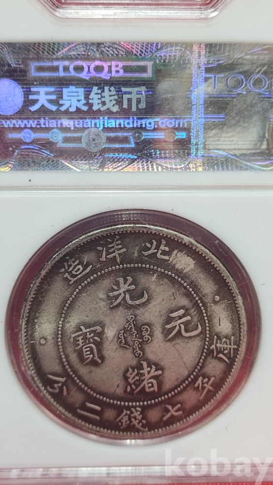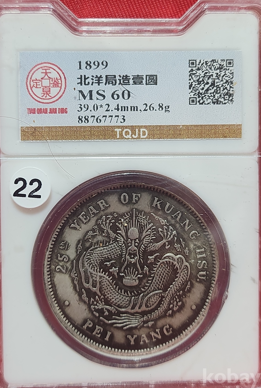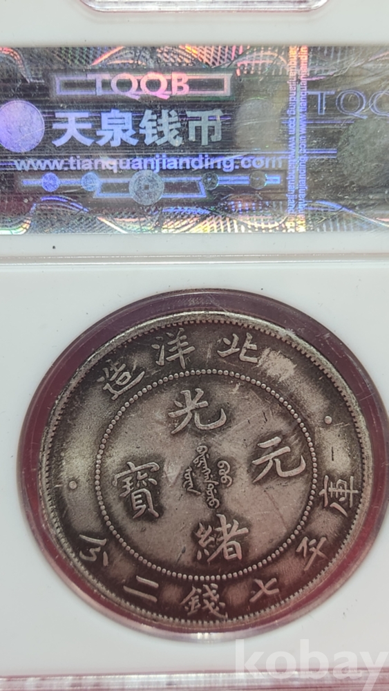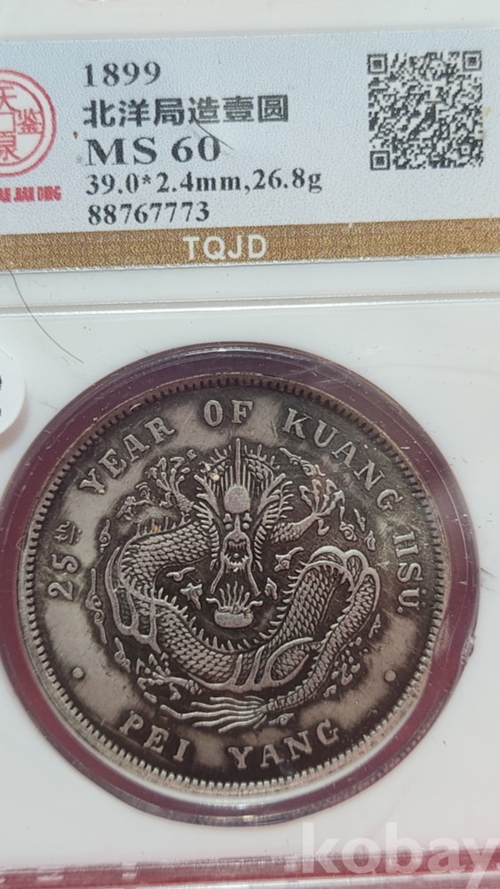 1899 년 큐알코드(QR CODE)가 함께하는 은색 광서원보 (光緖元寶) 화패로 밀봉된 상태입니다,