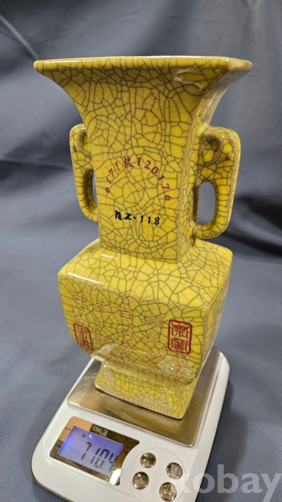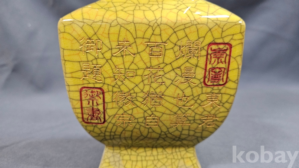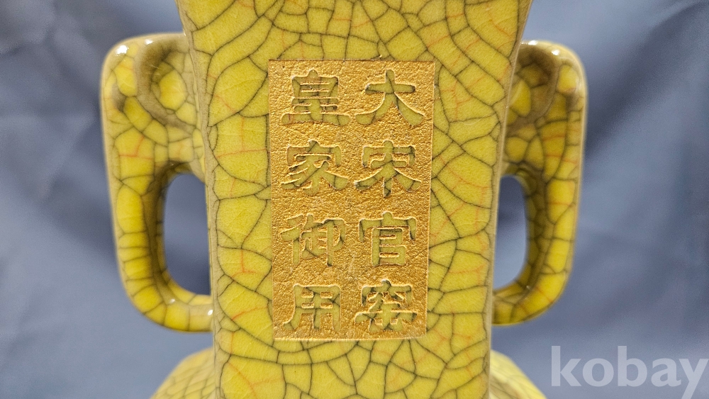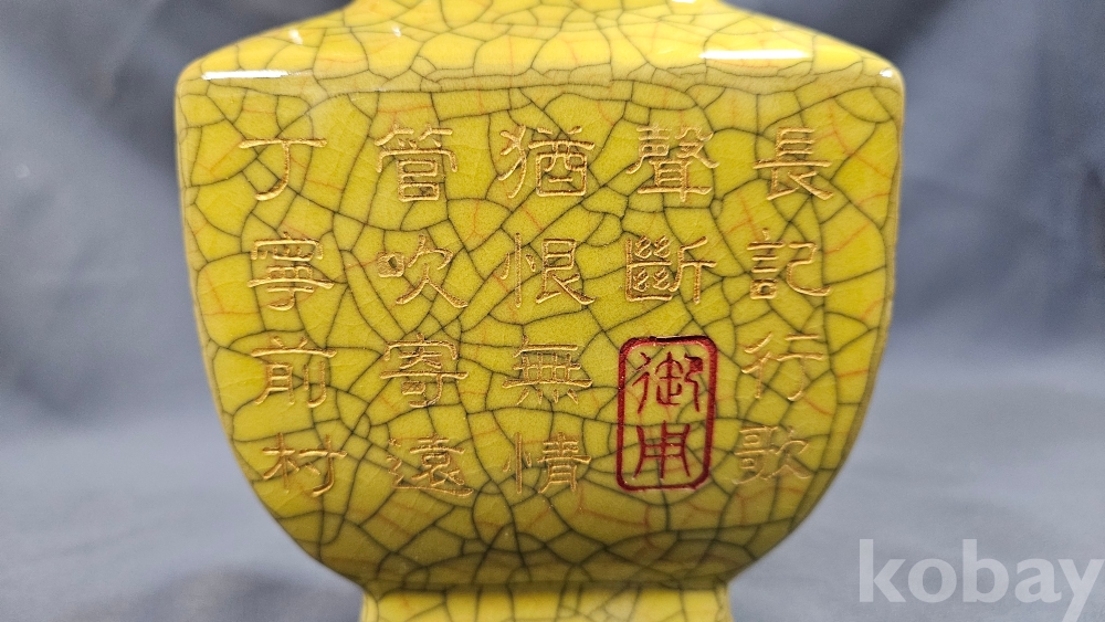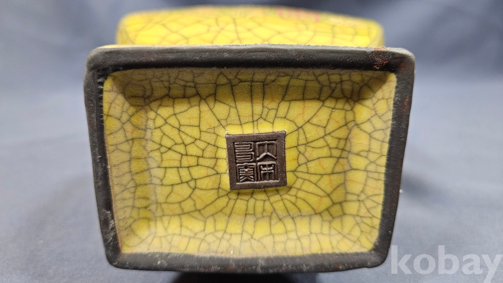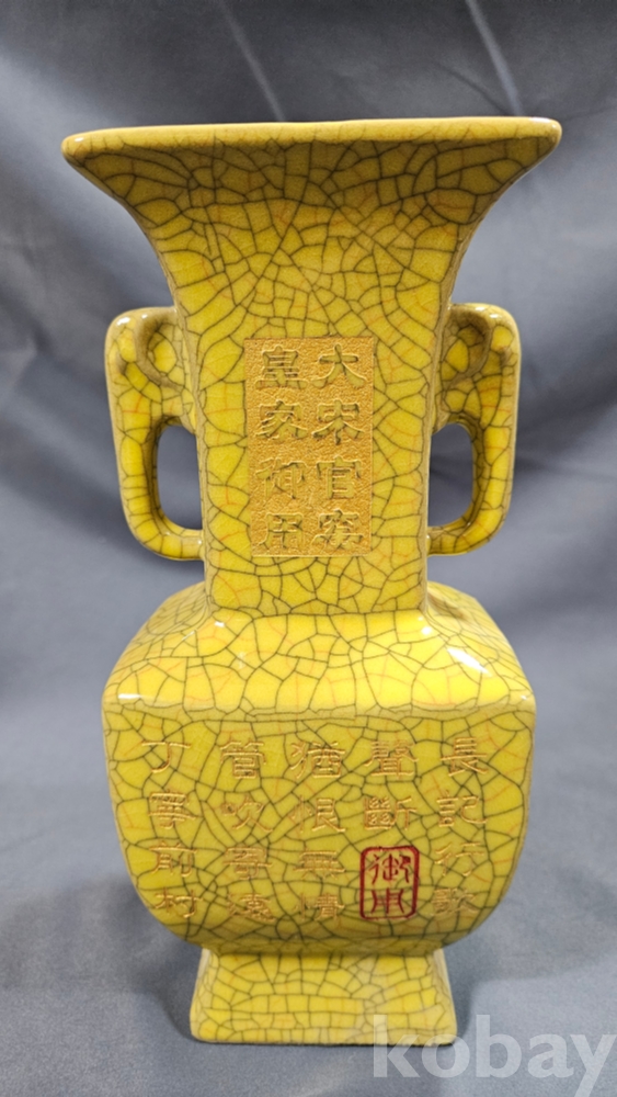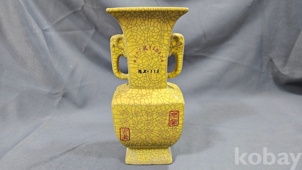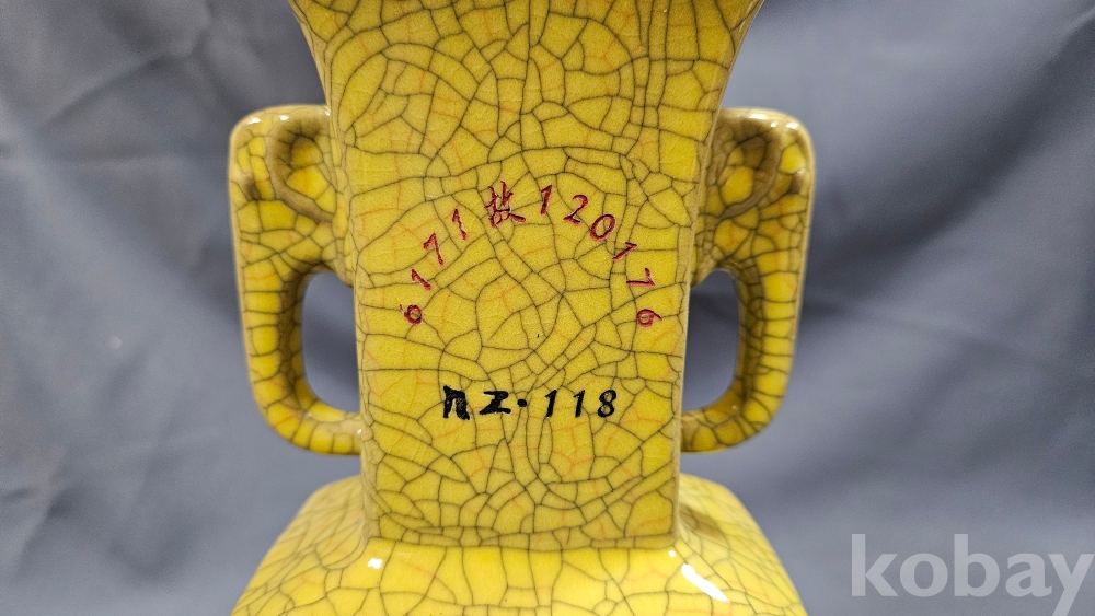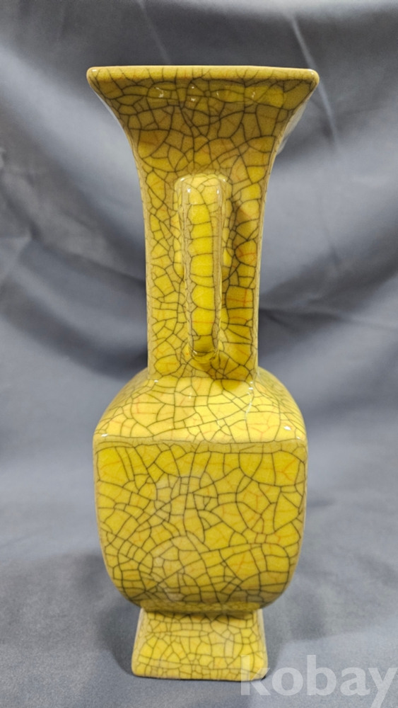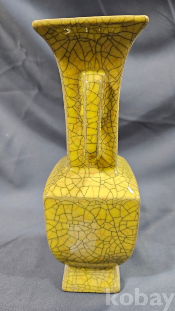빙렬가득한 황색 도자기 화병입니다.