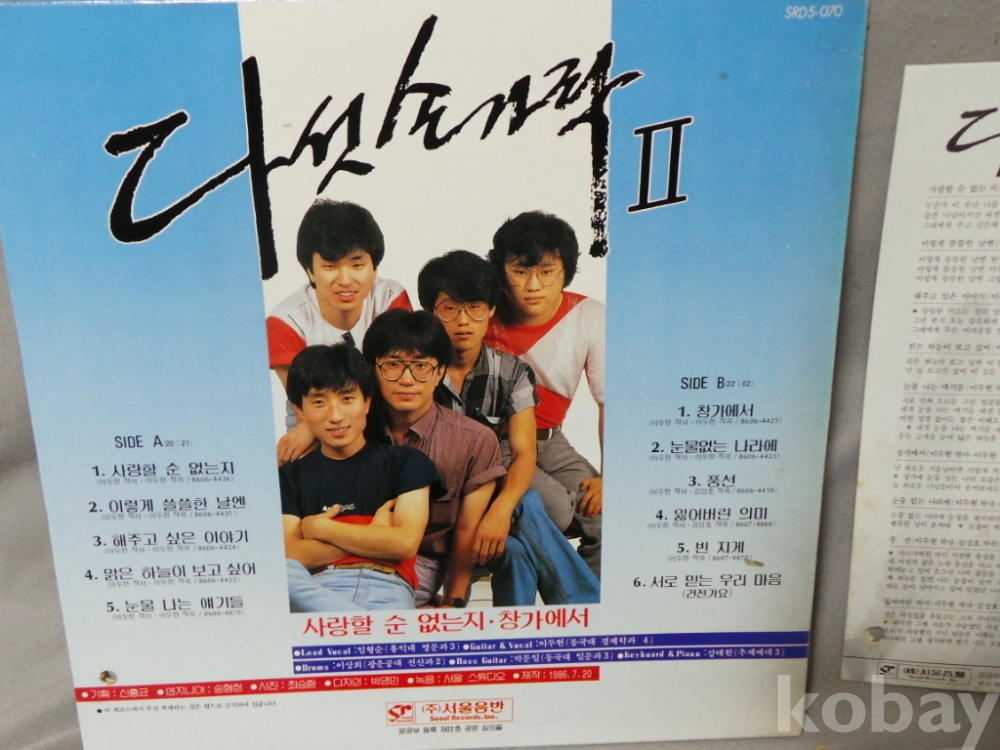 매우 귀한 다섯 손가락 2집개봉 LP.거의 미개봉 상태나 마찬가지로 상태좋음