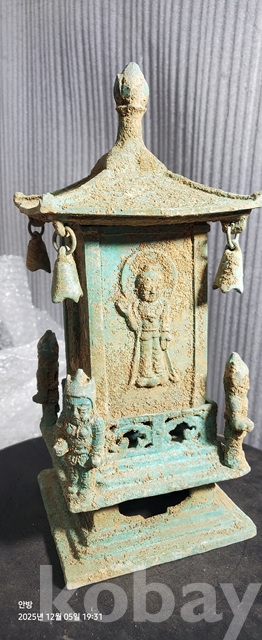 b-63.오래된 사리가들어있는 사면부처님이조각된 청동사리함