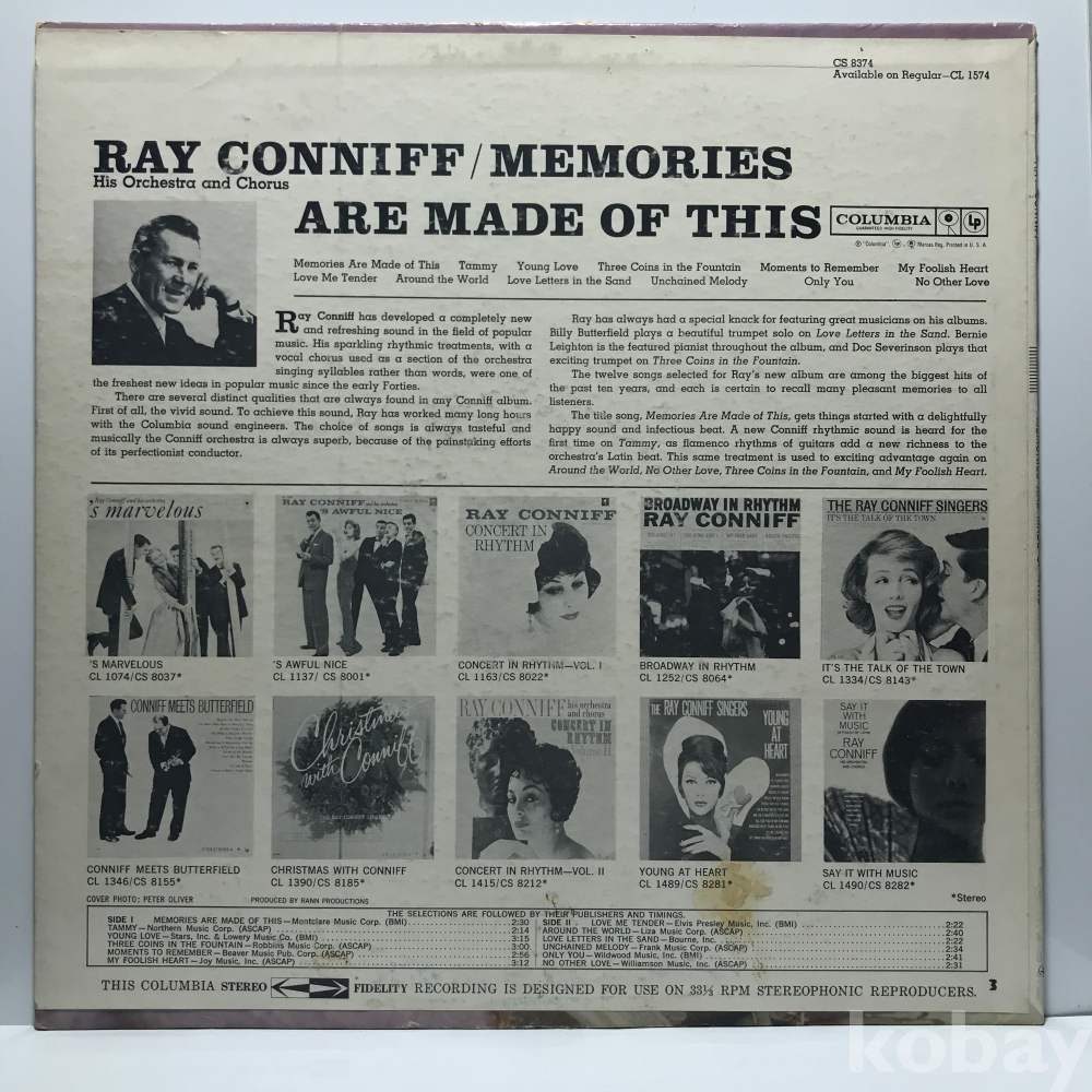 LP 10,800-39 RAY CONNIFF/ MEMORIES 수입 자켓 EX 알판 EX