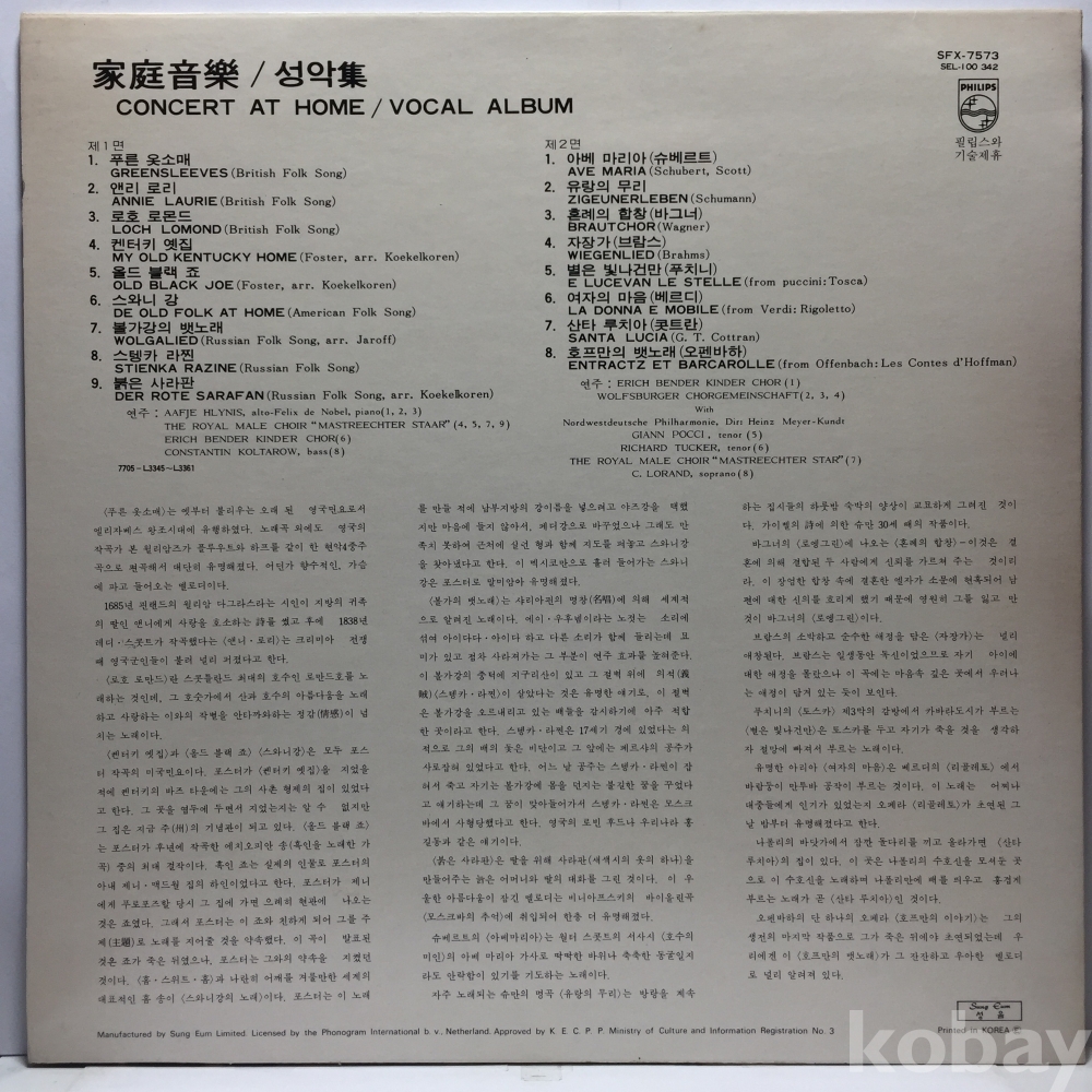 LP 81,900-60 가정음악 성악집 - 푸른 옷소매/ 아베 마리아 자켓 EX+ 알판 NM 77 년 국내반