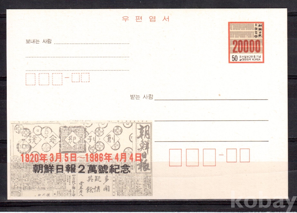 (기념엽서) 1986.4.4 CPC13 조선일보 2만호 (50뤈)