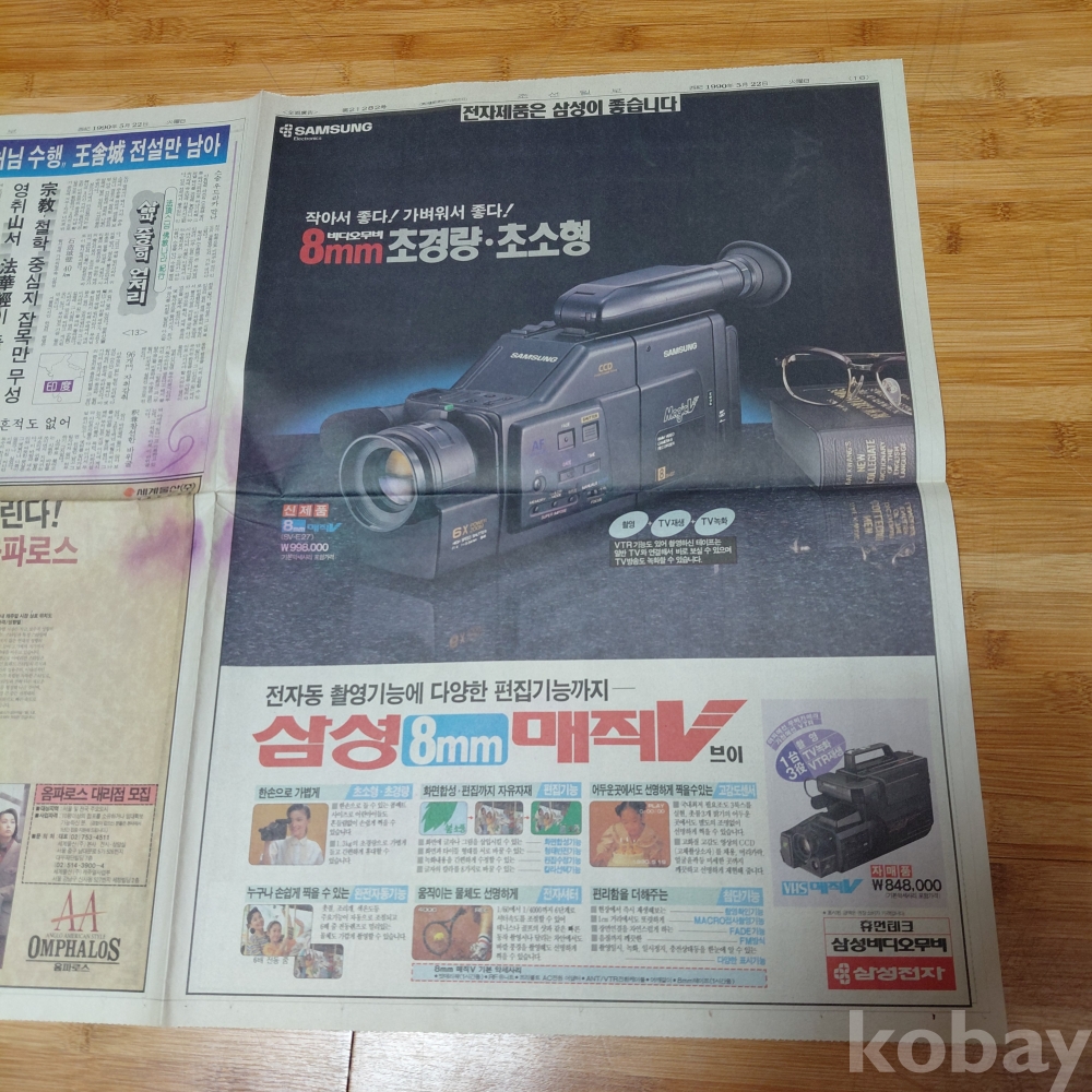 삼성전자 삼성 8mm매직V 광고 조선일보 90년5월22일 ,올려드립니다
