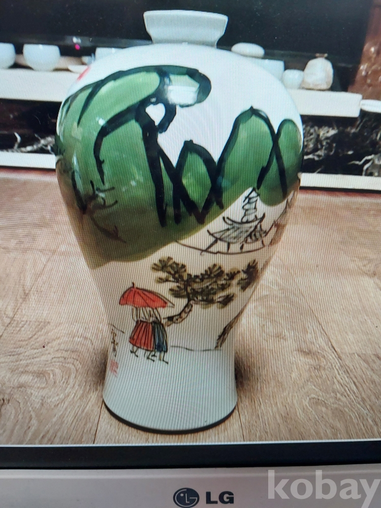 장식성이 좋은 운보 김기창 그림이 있는 매병으로,