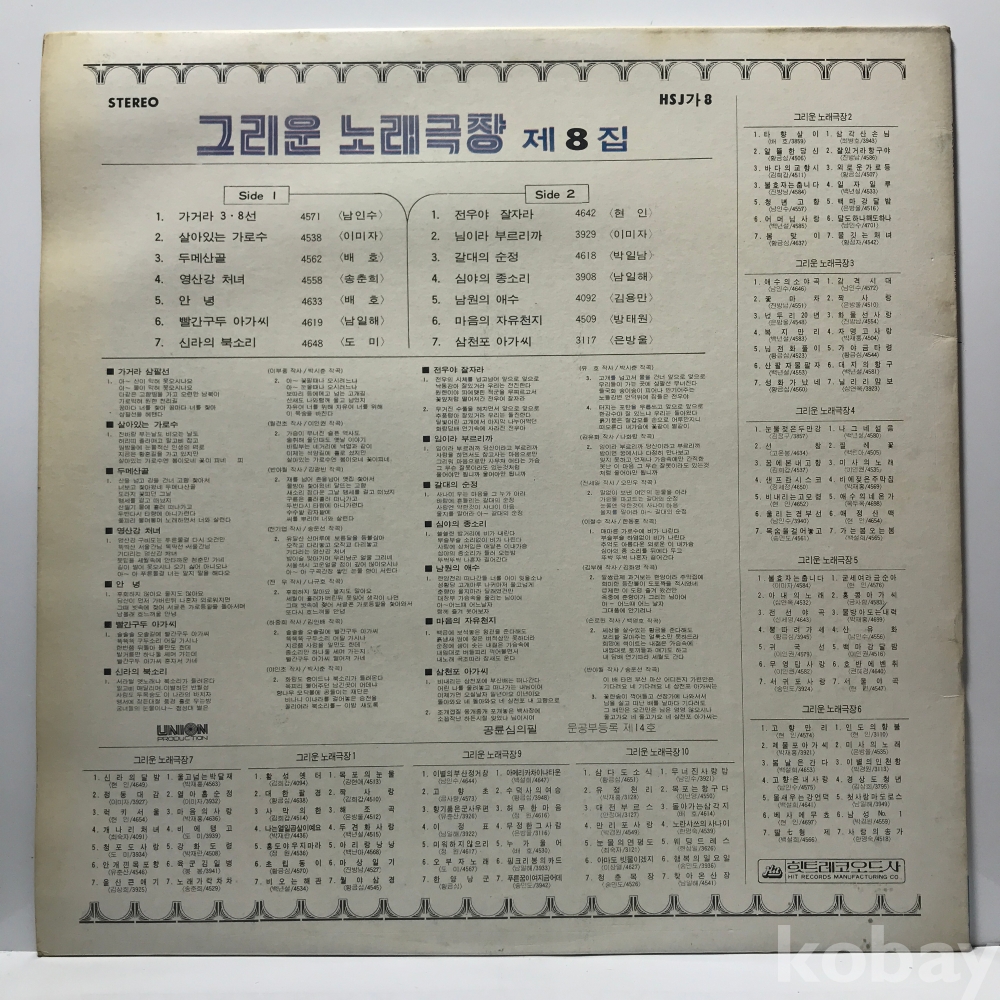 LP 29,300-109 그리운 노래극장 8집 - 남인수 현인 배호 송춘희 외 . 76 히트 자켓 EX+ 알판 EX