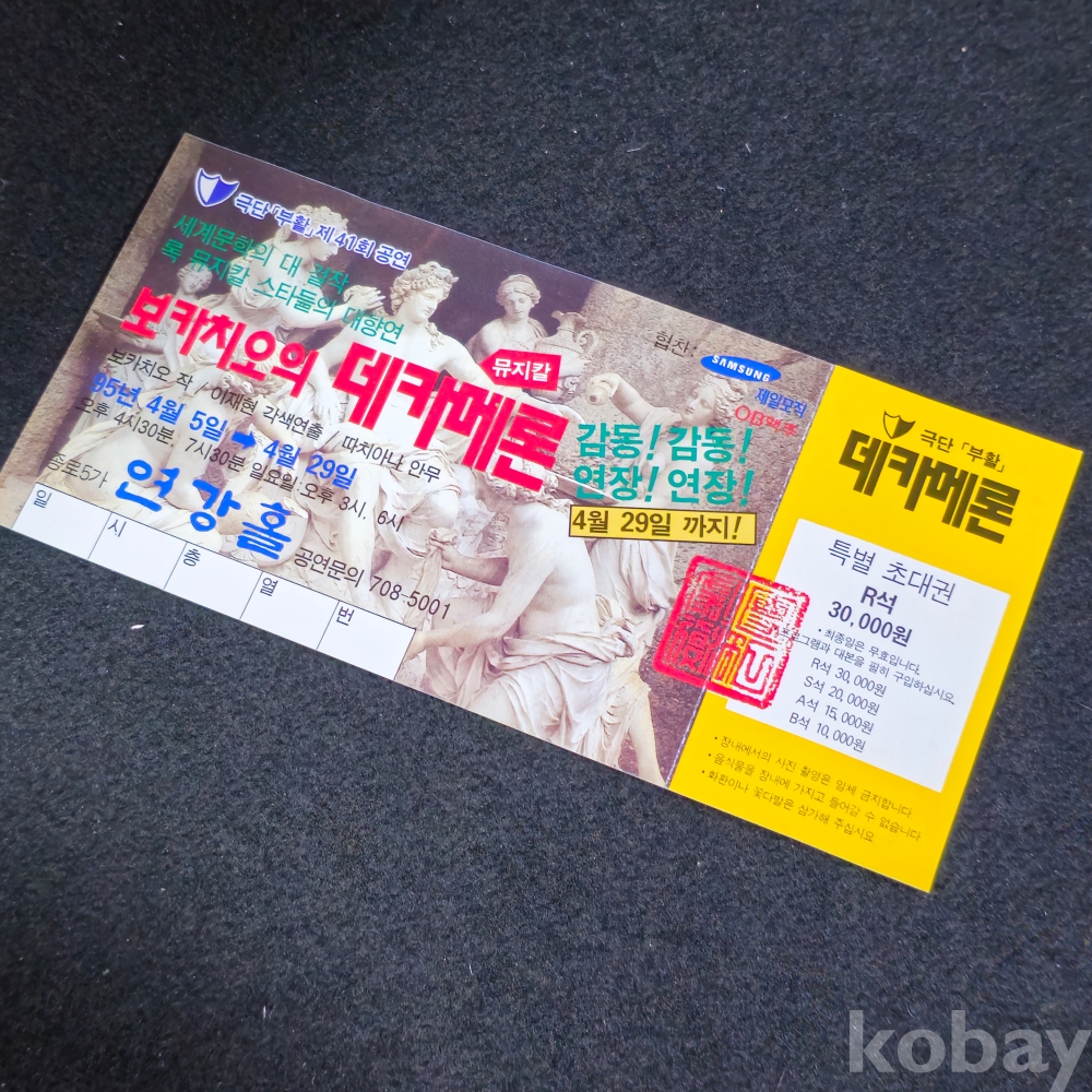 (((근현대사자료))) 1995년 극단 부활 제41회 공연 보카치오의 데카메론 특별 초대권