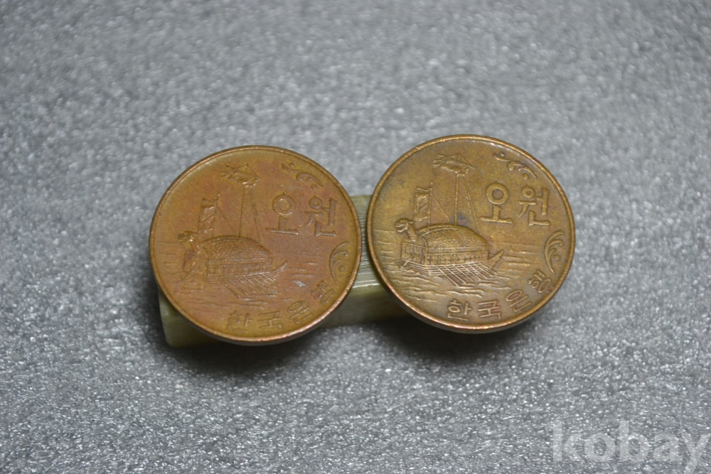 " 귀한종류~ 특년도(적동화, 황동화)~ 초기발행년도 1970년도~ (적. 황 2점 일괄) ~ 한국은행 1970년도 거북선 5원 동화 ~ 현행주화 5주 / 깨끗하고 좋은 보존상태~
