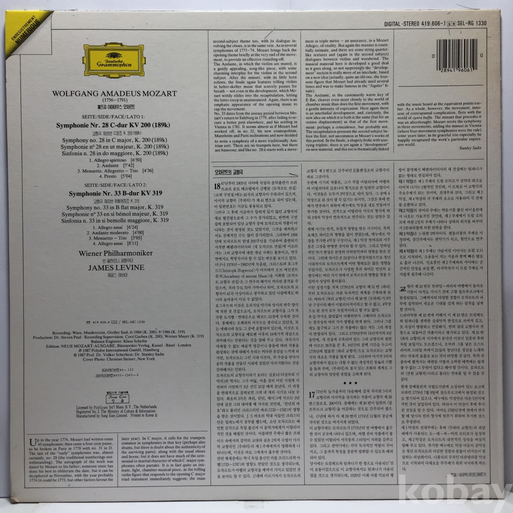 LP 81,900-64 Wolfgang Amadeus Mozart Symphonien Nos. 28.33 - Wiener Philharmoniker . James Levine 자켓 EX+ 알판 NM 90 년 국내반