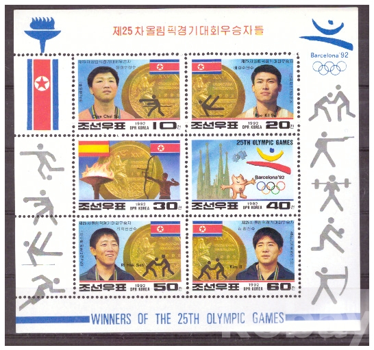 (올림픽) 북한 1992.12.20 제25차 올림픽경기대회 우승자들 sheetlet of 6 MNH