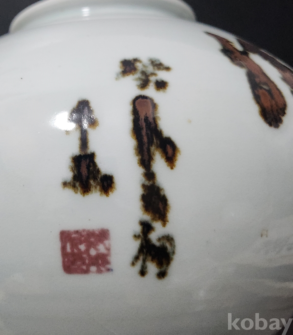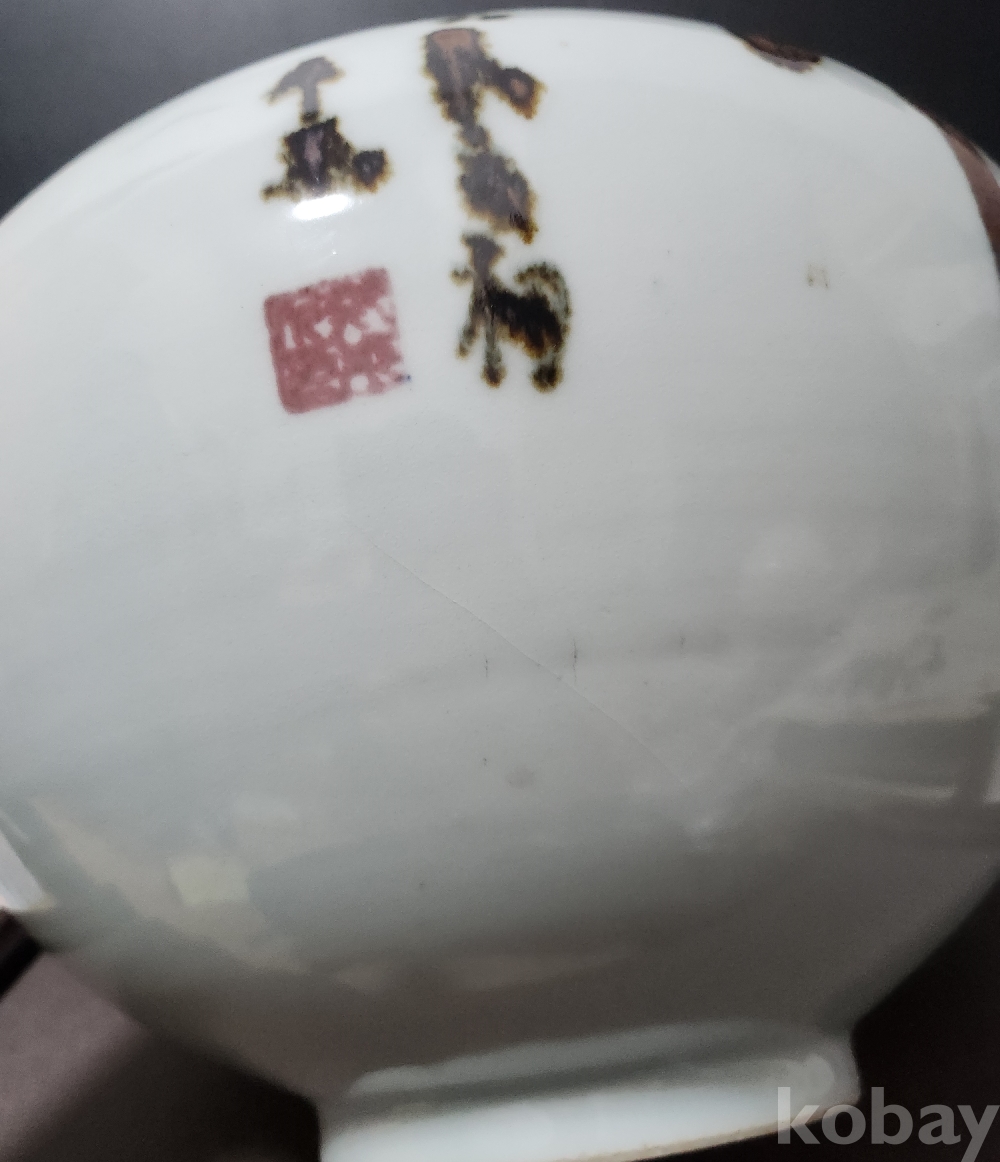 원소장자께서 서예가의 전시회에서 서예가께서 도자기에 철화로 작품하신 물품을