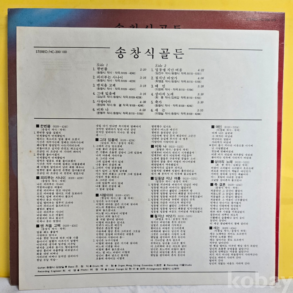 | 자켓상태 | EX : 약간의 마모, 모서리 찢김 존재 | 음반상태 | EX : 재생에 영향 없는 가벼운 기스 존재 | 발매정보 | 초반 | 가사지여부 | 유 |