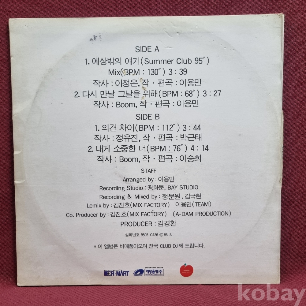 | 자켓상태 | EX : 약간의 마모, 모서리 찢김 존재 | 음반상태 | VG : 생활 기스 다수, 가벼운 노이즈 존재 | 발매정보 | 초반 | 가사지여부 | 무 |