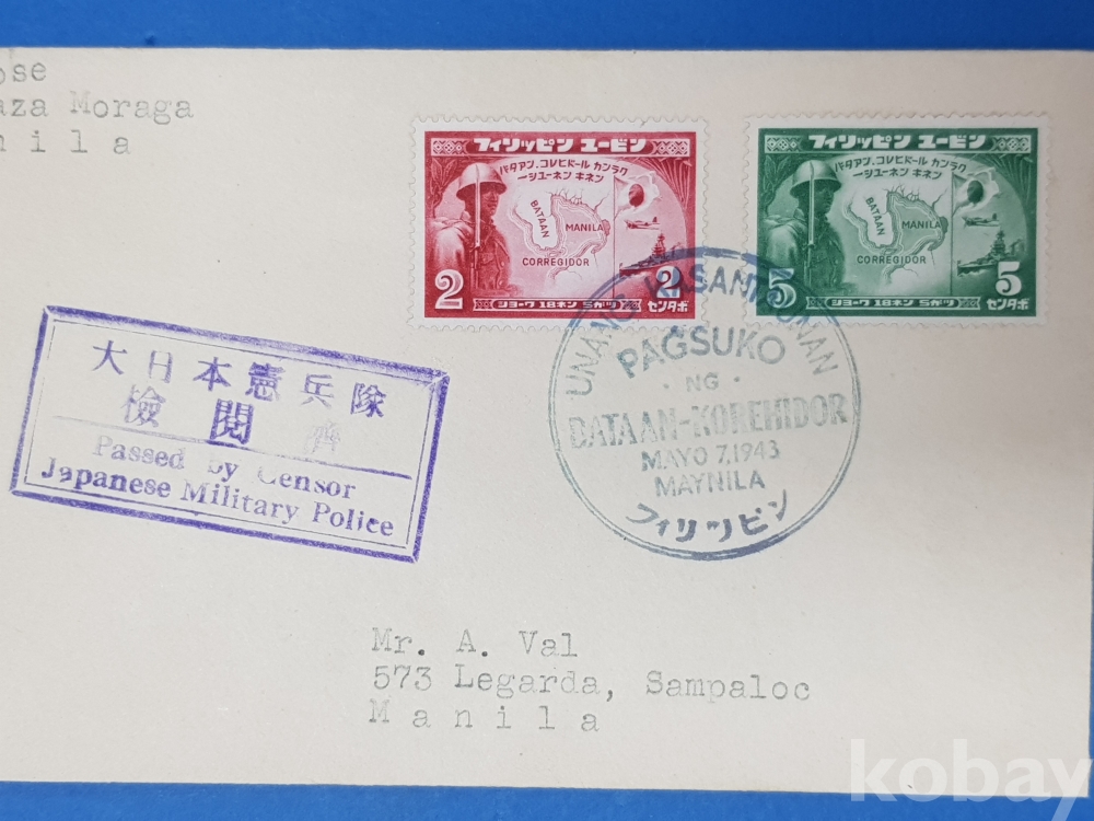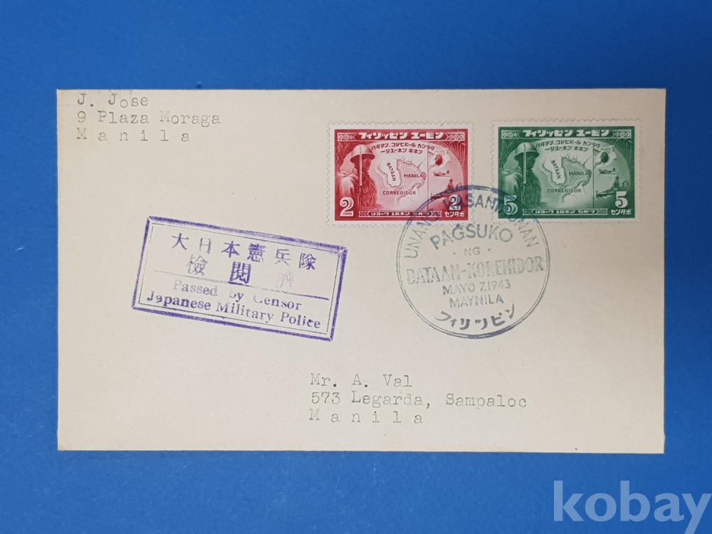 **** 필리핀 마닐라, 일본군 검열 소인분/1943.5.7/우표2매 첩부