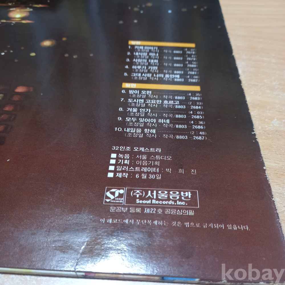 | 자켓상태 | EX : 약간의 마모, 모서리 찢김 존재 | 음반상태 | EX : 재생에 영향 없는 가벼운 기스 존재 | 발매정보 | 초반 | 가사지여부 | 유 |
