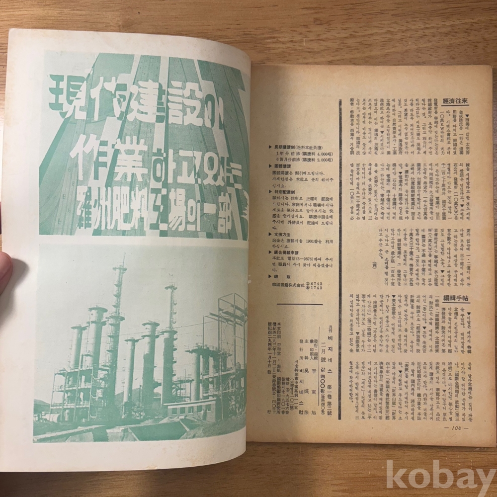 [희귀본, 한국현대사, 제2공화국, 경제번영의 설계도] <월간 비지네스 1961년 2월>, p. 104, 상태 중상급(필기있음, 사진참조)